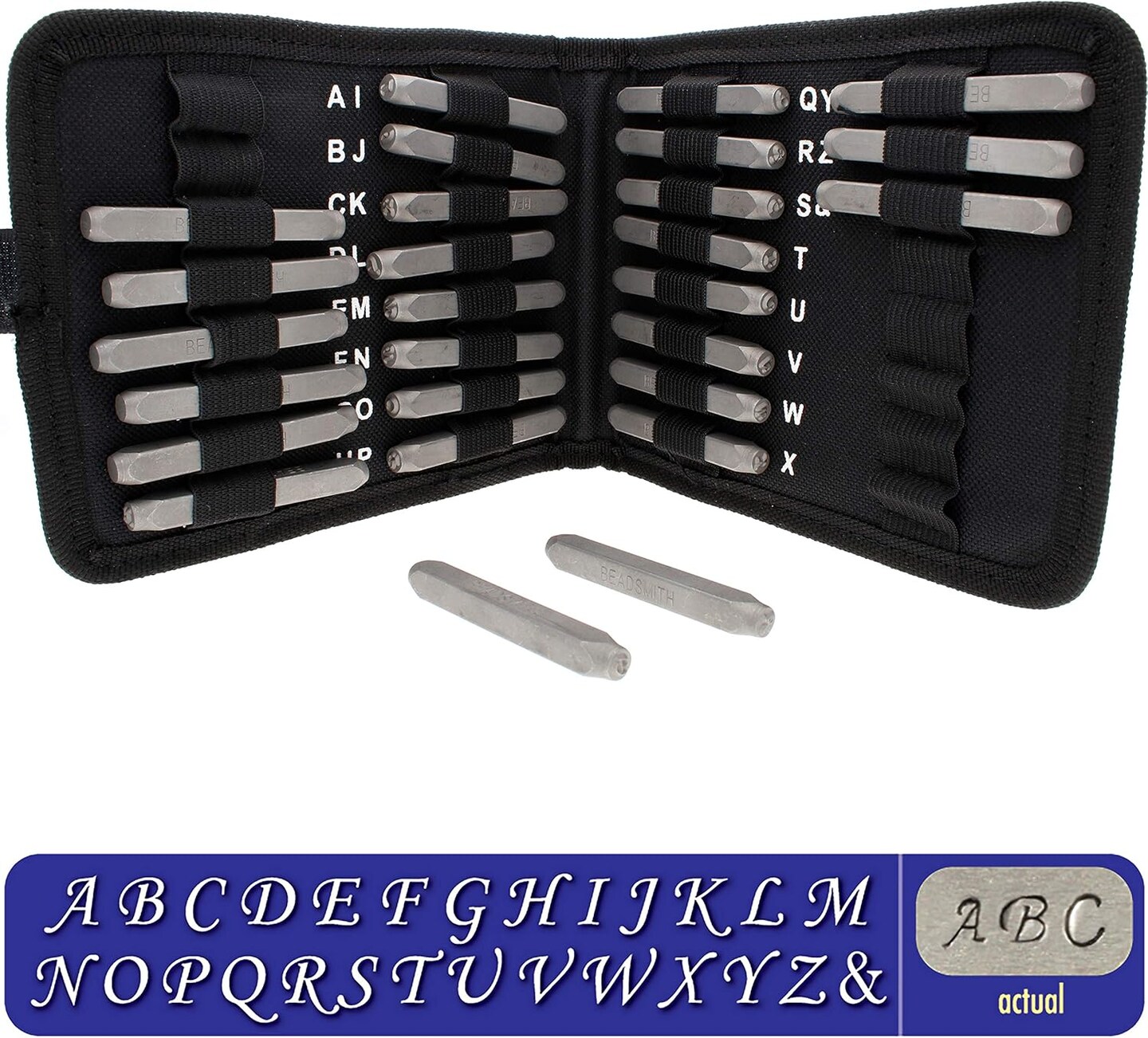 The Beadsmith Steel Alphabet Stamps - Metal Elements - Uppercase Gothic Font - A-Z Letters Plus “&” Symbol - Storage Case Included - Used for Stamping & Personalizing Soft Metals