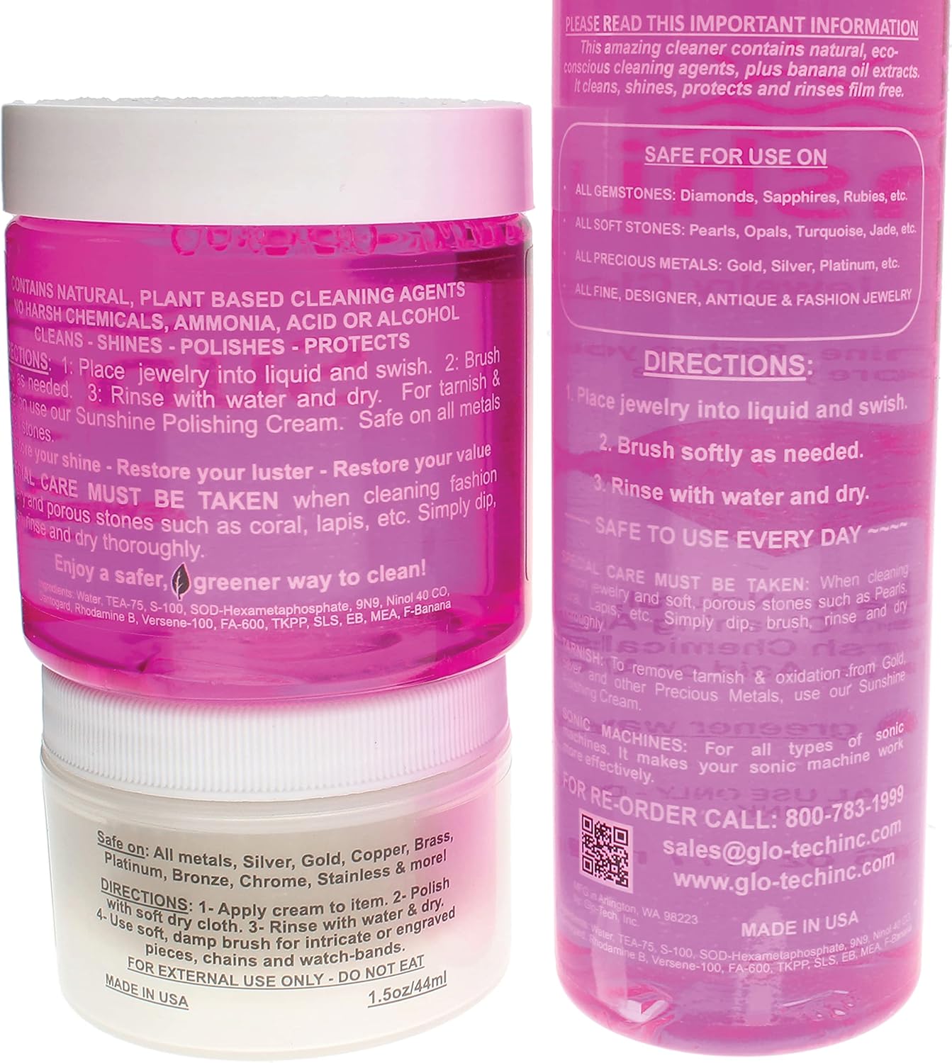 The Beadsmith Sunshine Premium Jewelry Cleaner – 4oz Cleaner with Brush, 6oz Refill Bottle and 1.5oz Polishing Cream – Safe to Use on Gemstones, Soft Stones, Precious Metals on All Types of Jewelry