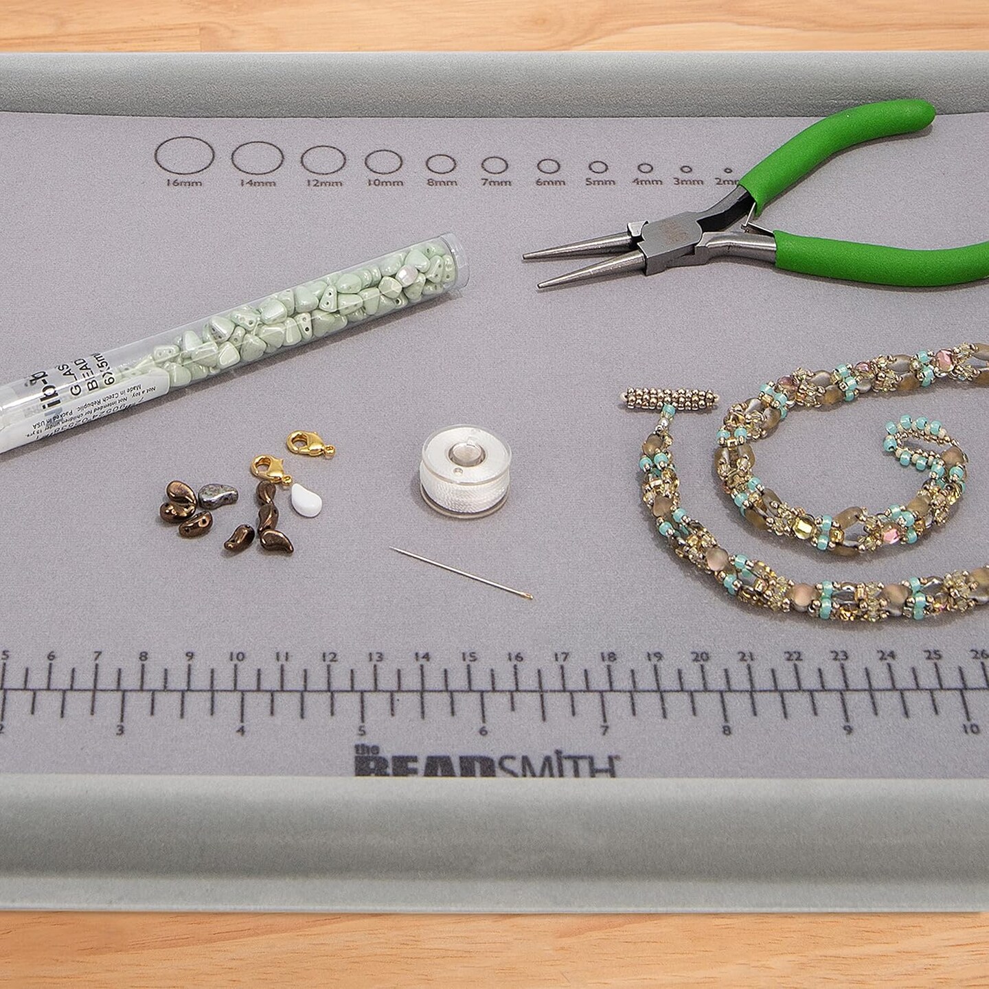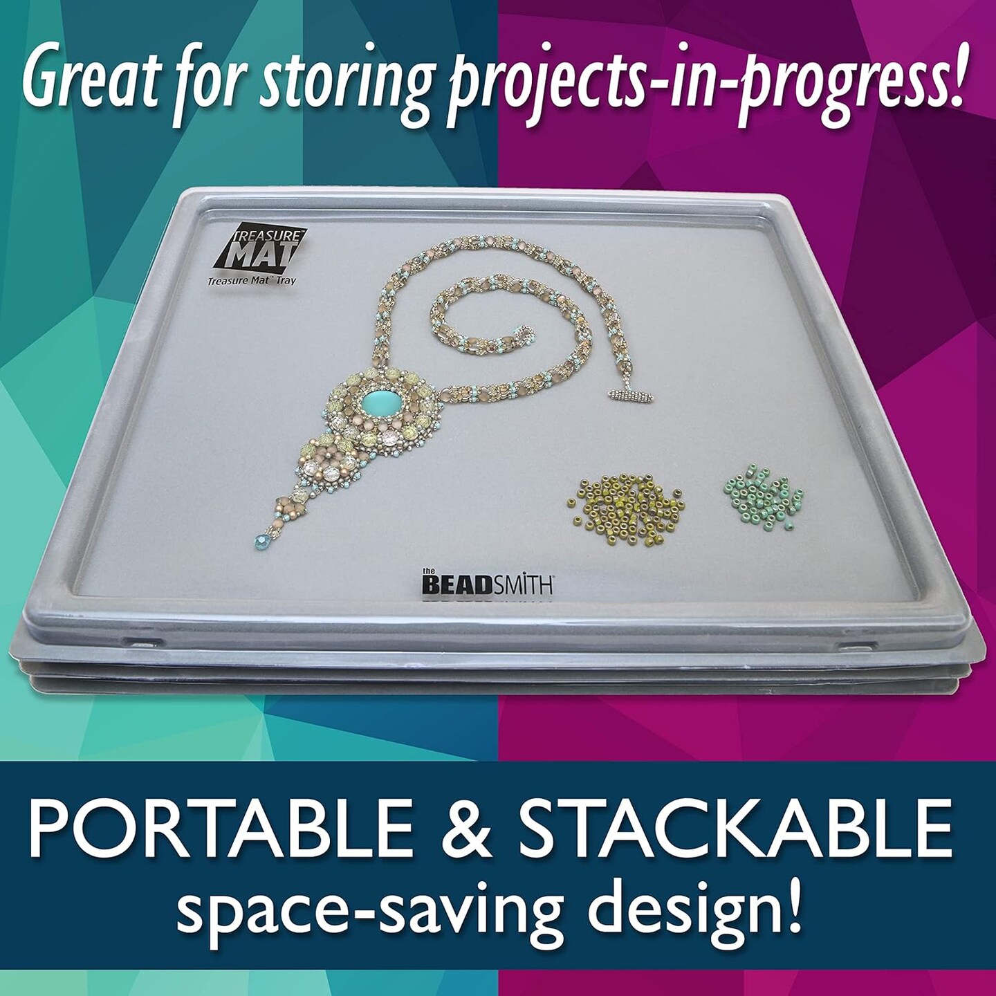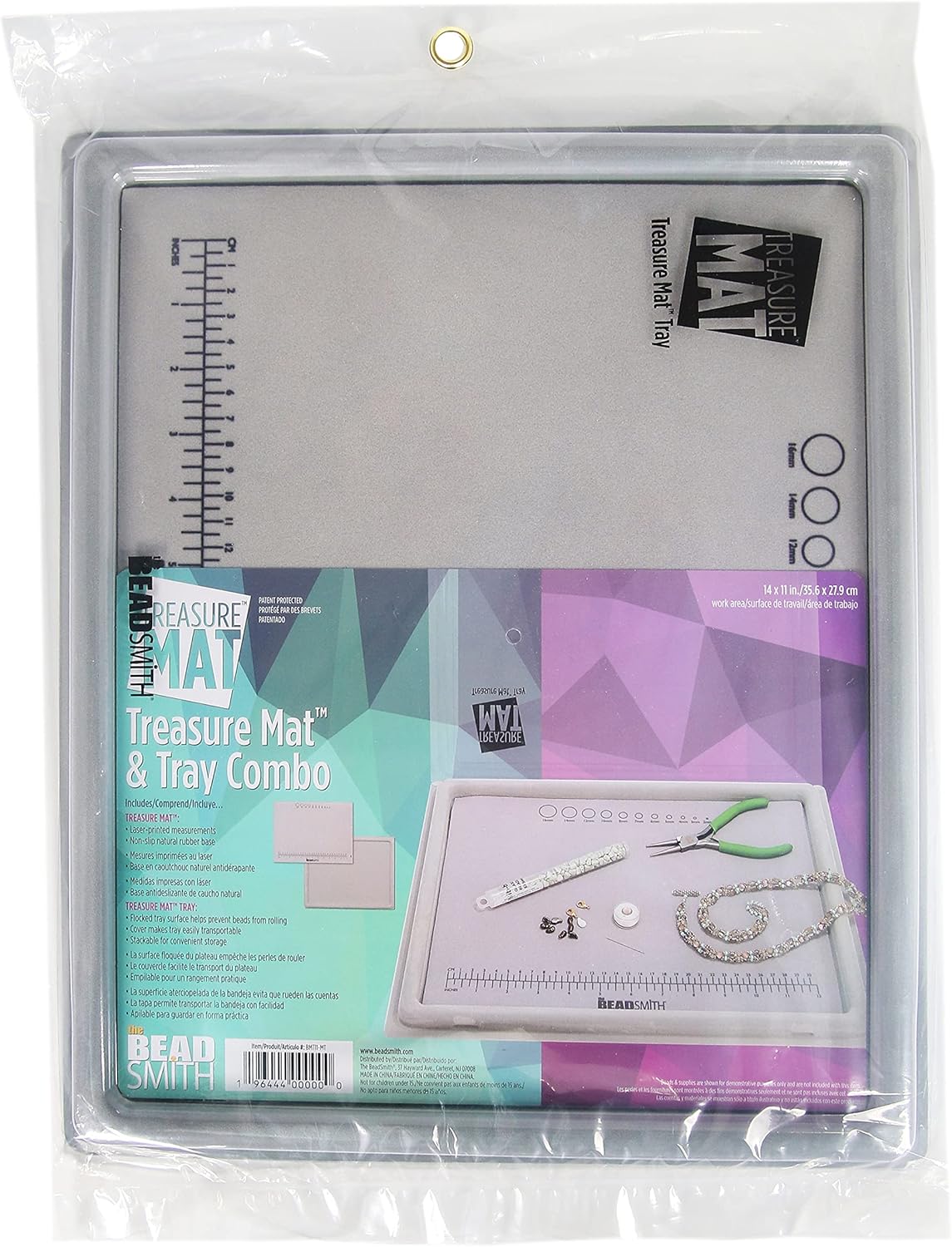 The Beadsmith Treasure Mat Tray and Mat - 11 x 14 Inches - Grey Flocked Tray with Cover - Non-Slip, Rubber Base Mat - Design Board for Jewelry Making