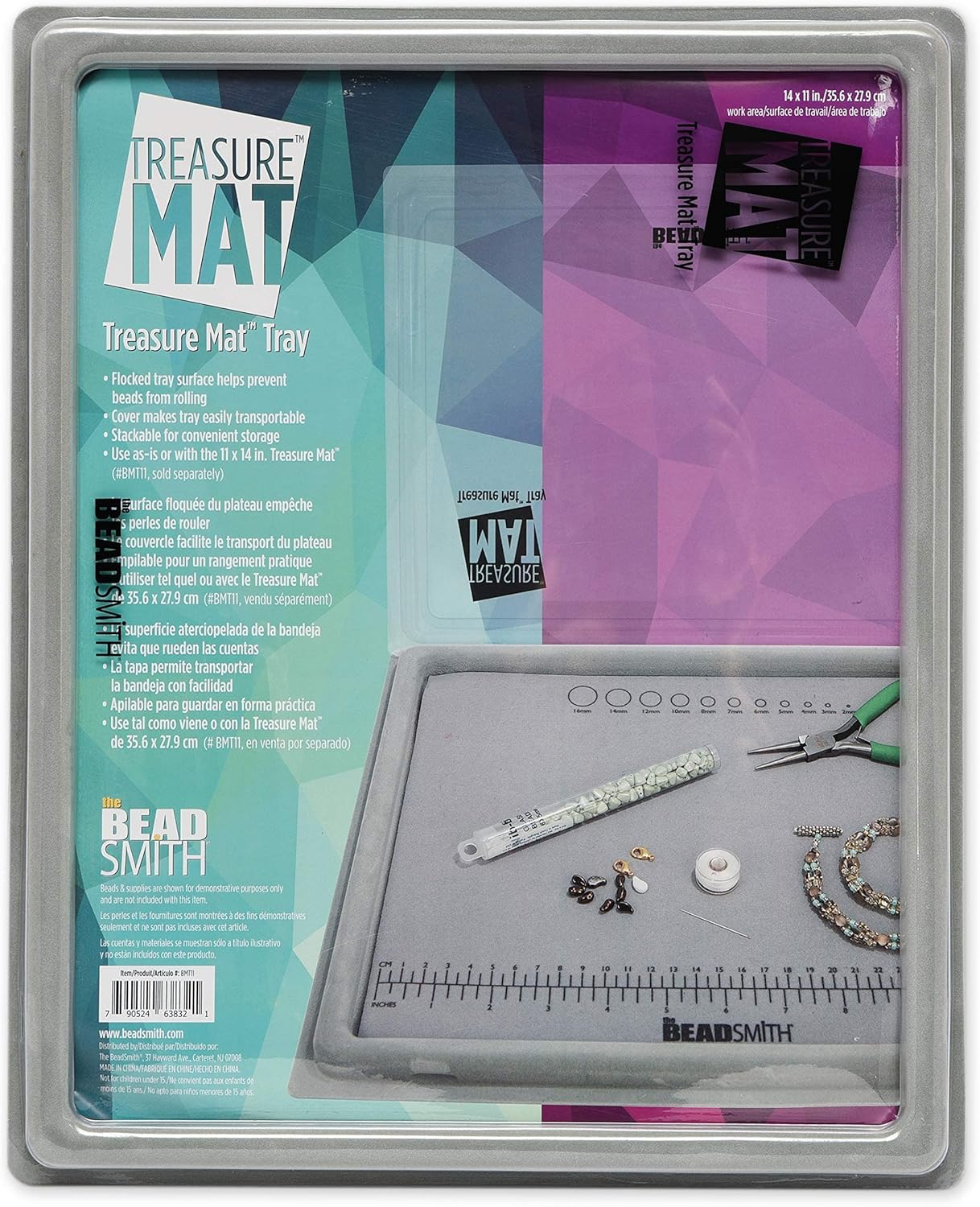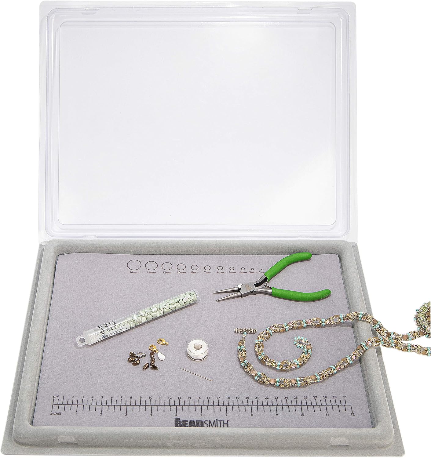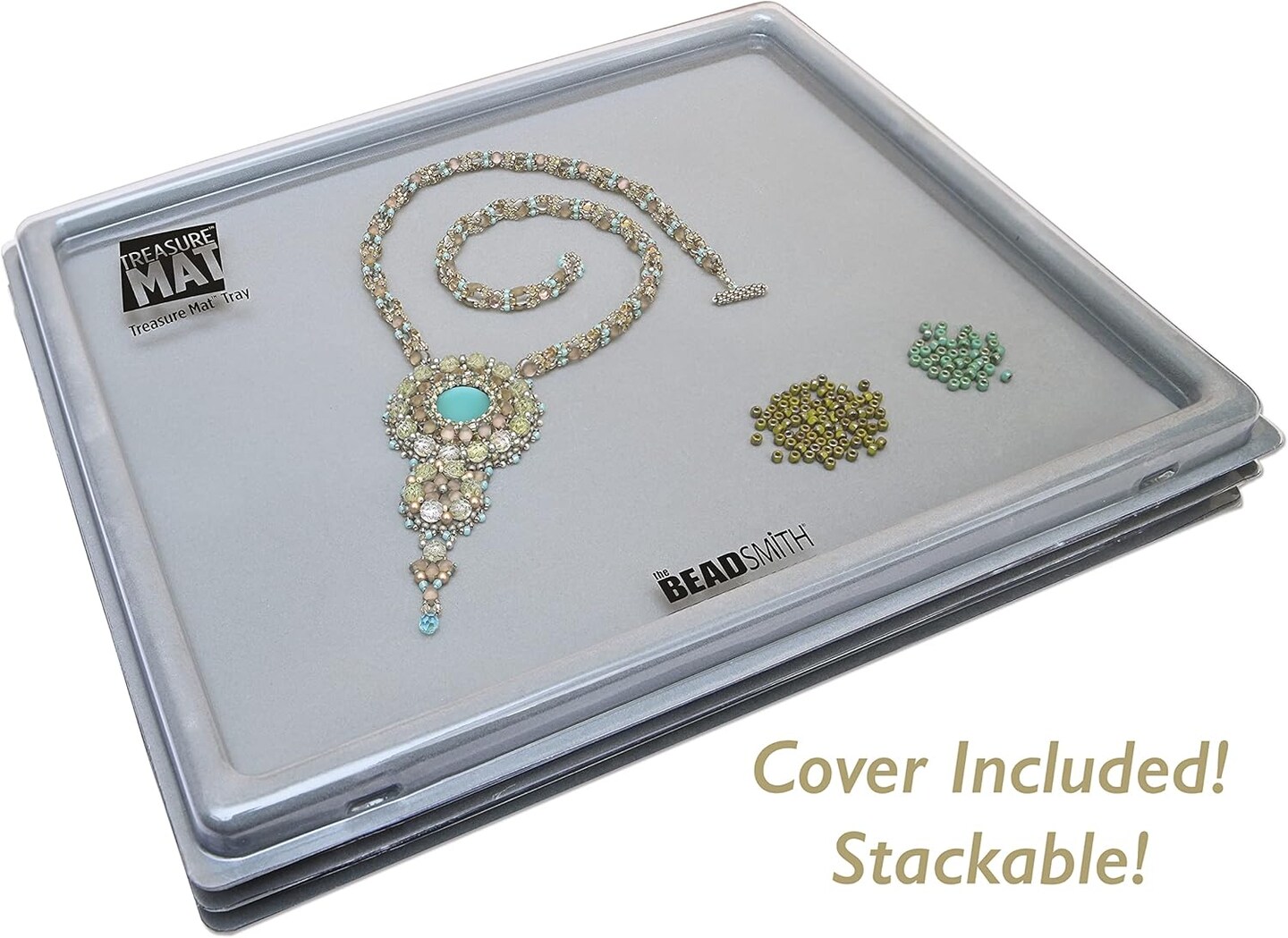 The Beadsmith Treasure Mat Tray, Bead Board, Grey Flocked, with Cover, Design Boards for Jewelry Making. (Treasure Mat not Included)