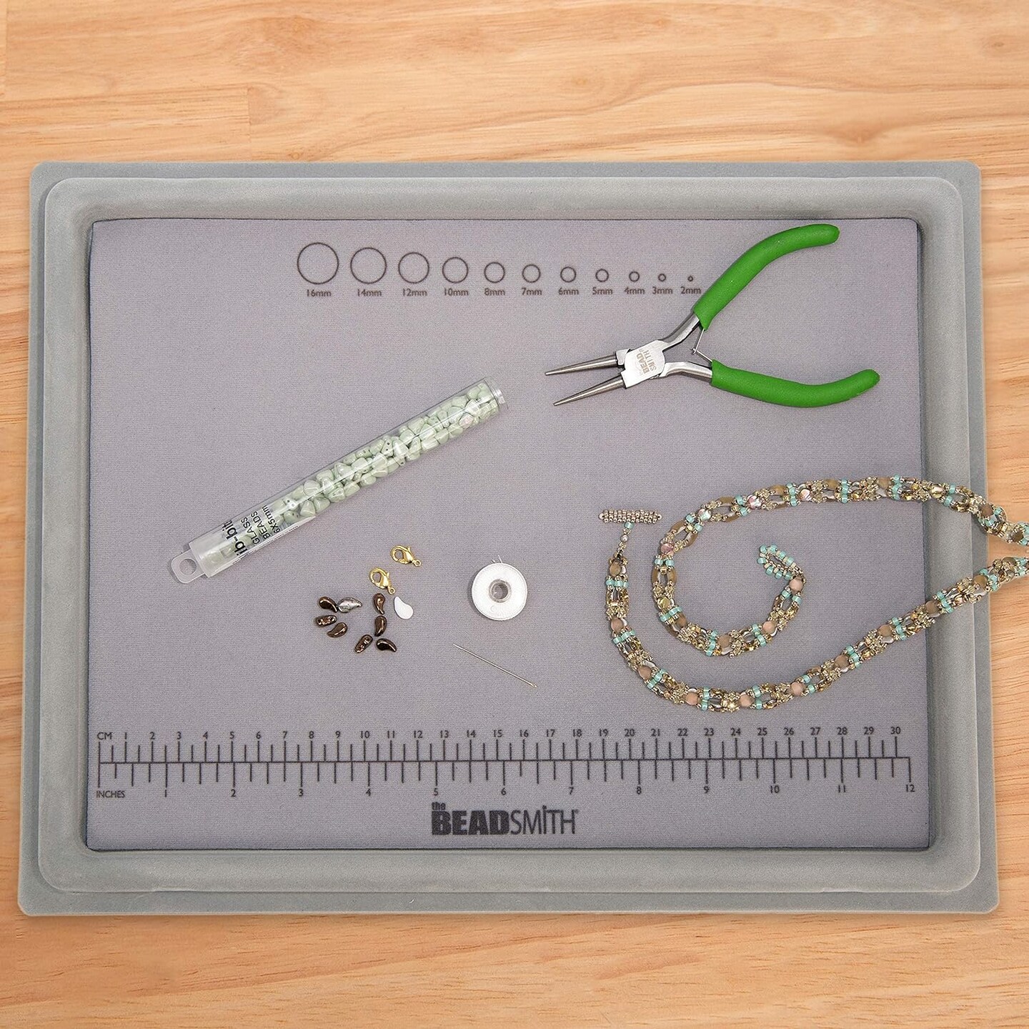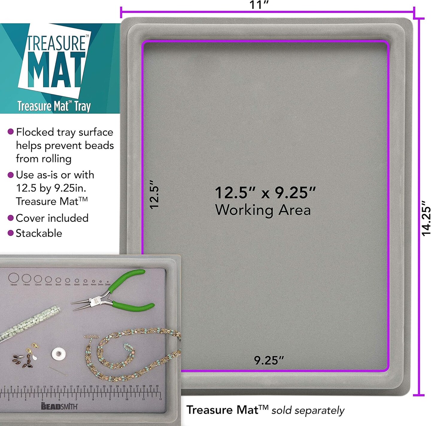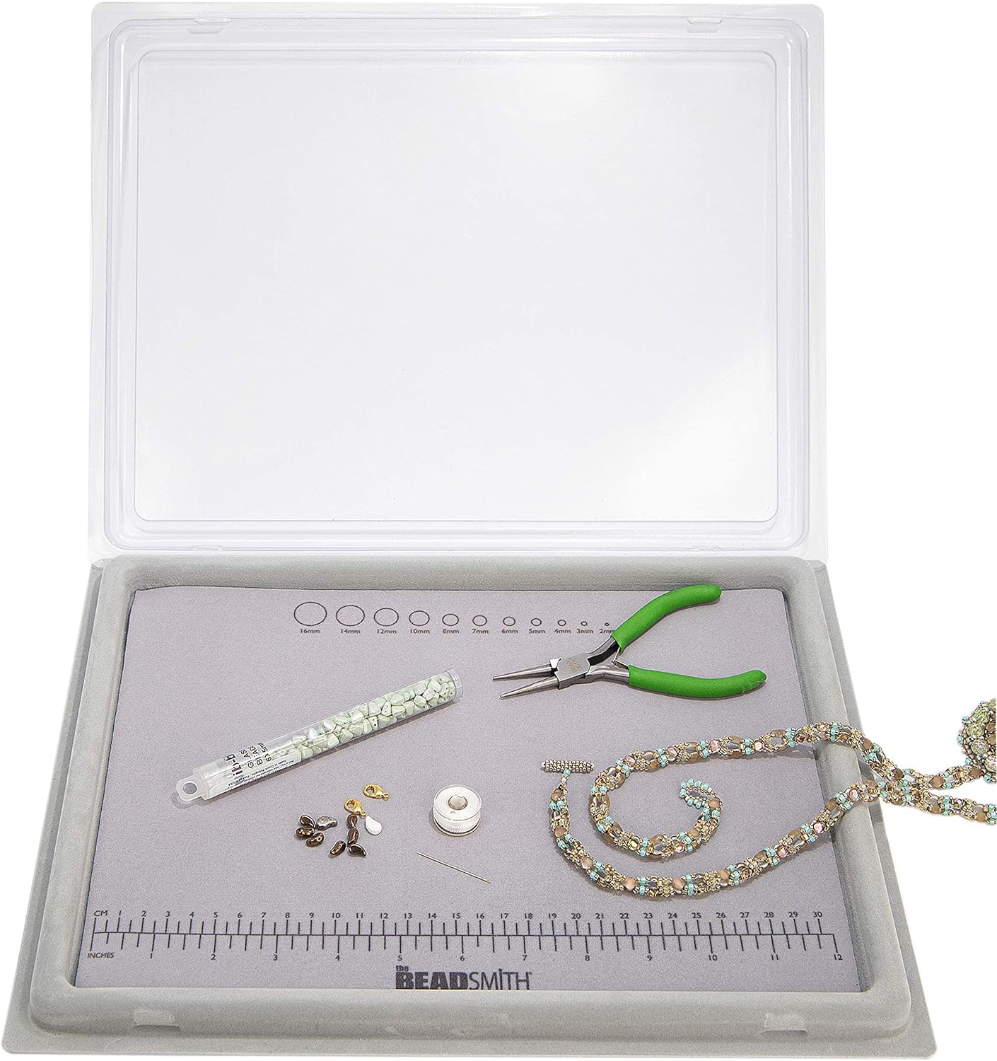 The Beadsmith Treasure Mat Tray, Bead Board, Grey Flocked, with Cover, Design Boards for Jewelry Making. (Treasure Mat not Included)