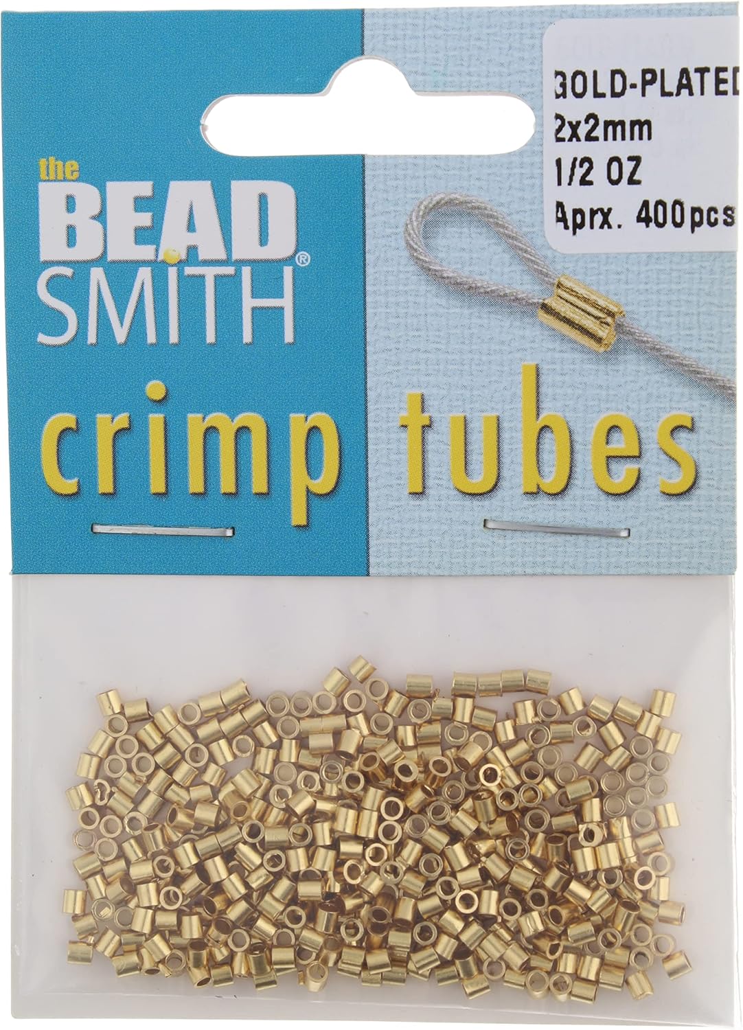 The Beadsmith Tube Crimp Beads, 2 x 2mm, 400 Pieces, Gold Color, Uniform Cylindrical Shape, No Sharp Edges, Designed to Secure The Ends of Jewelry Stringing Wires and Cables
