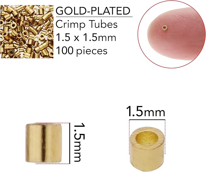 The Beadsmith Tube Crimp Beads, Gold Color, Uniform Cylindrical Shape, No Sharp Edges, Designed to Secure the Ends of Jewelry Stringing Wires and Cables