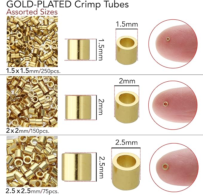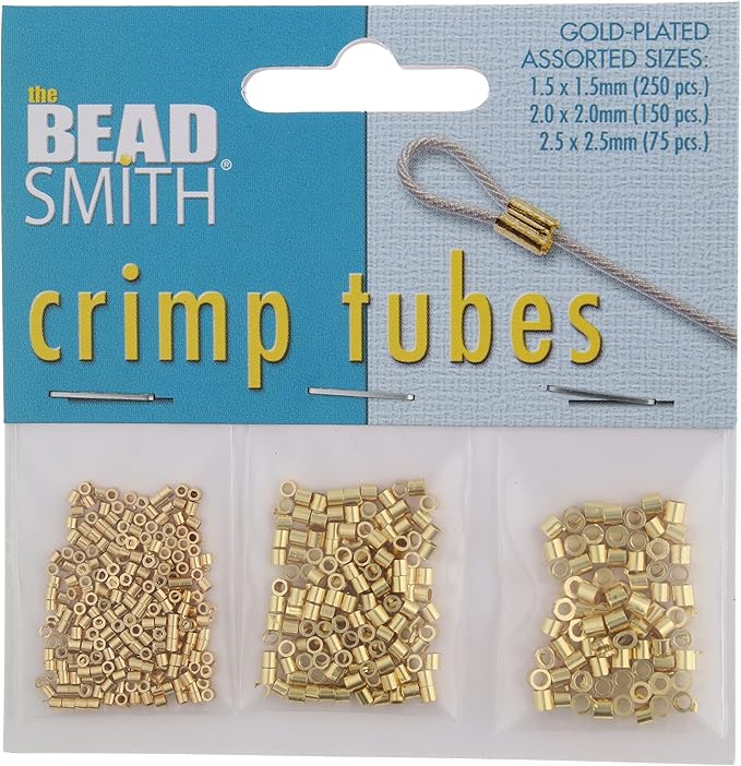 The Beadsmith Tube Crimp Beads, Gold Color, Uniform Cylindrical Shape, No Sharp Edges, Designed to Secure the Ends of Jewelry Stringing Wires and Cables