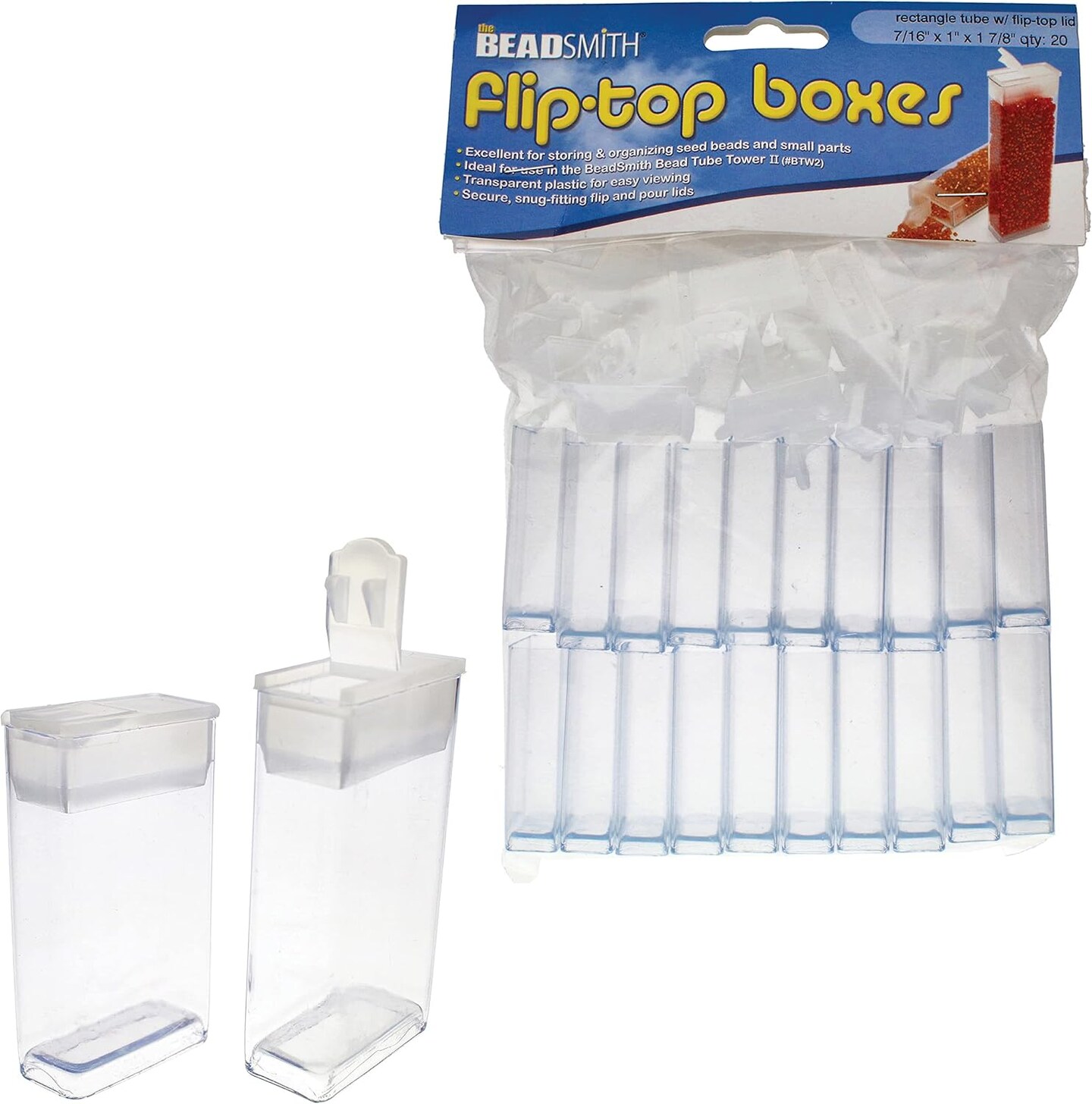 The Beadsmith TUBE PLASTIC RECT W/FLIP TOP 7/16 X 1 X 1 7/8-20/BG
