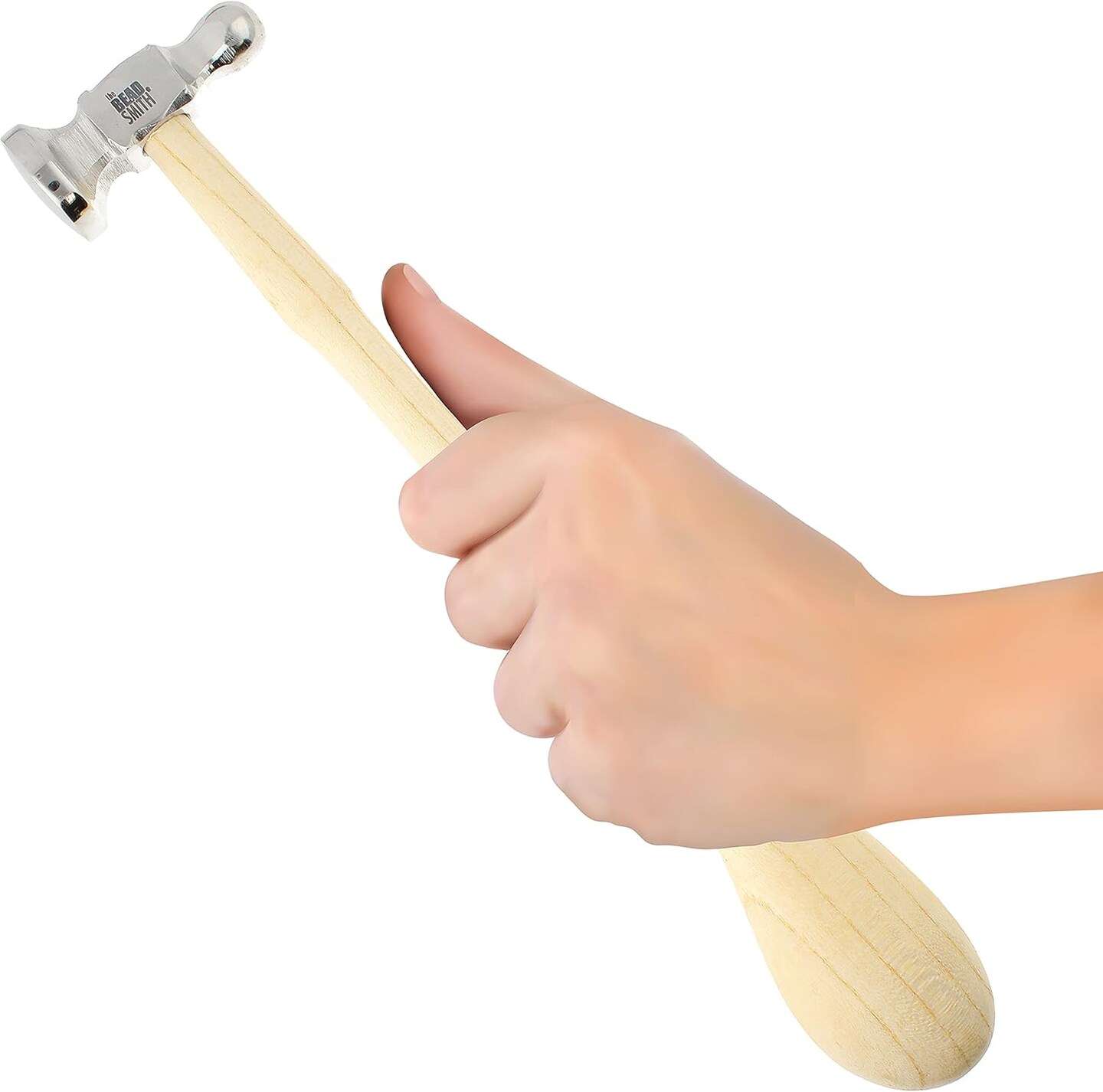 The Beadsmith Two-Sided Chasing Hammer - 10.75 Inches Wooden Handle, 2.25” Steel Head with a 14mm Ball Pein & 1.1"/ 28mm Domed Face - Tool Used to Add Texture and Dimension to Metalwork, 4oz./113g