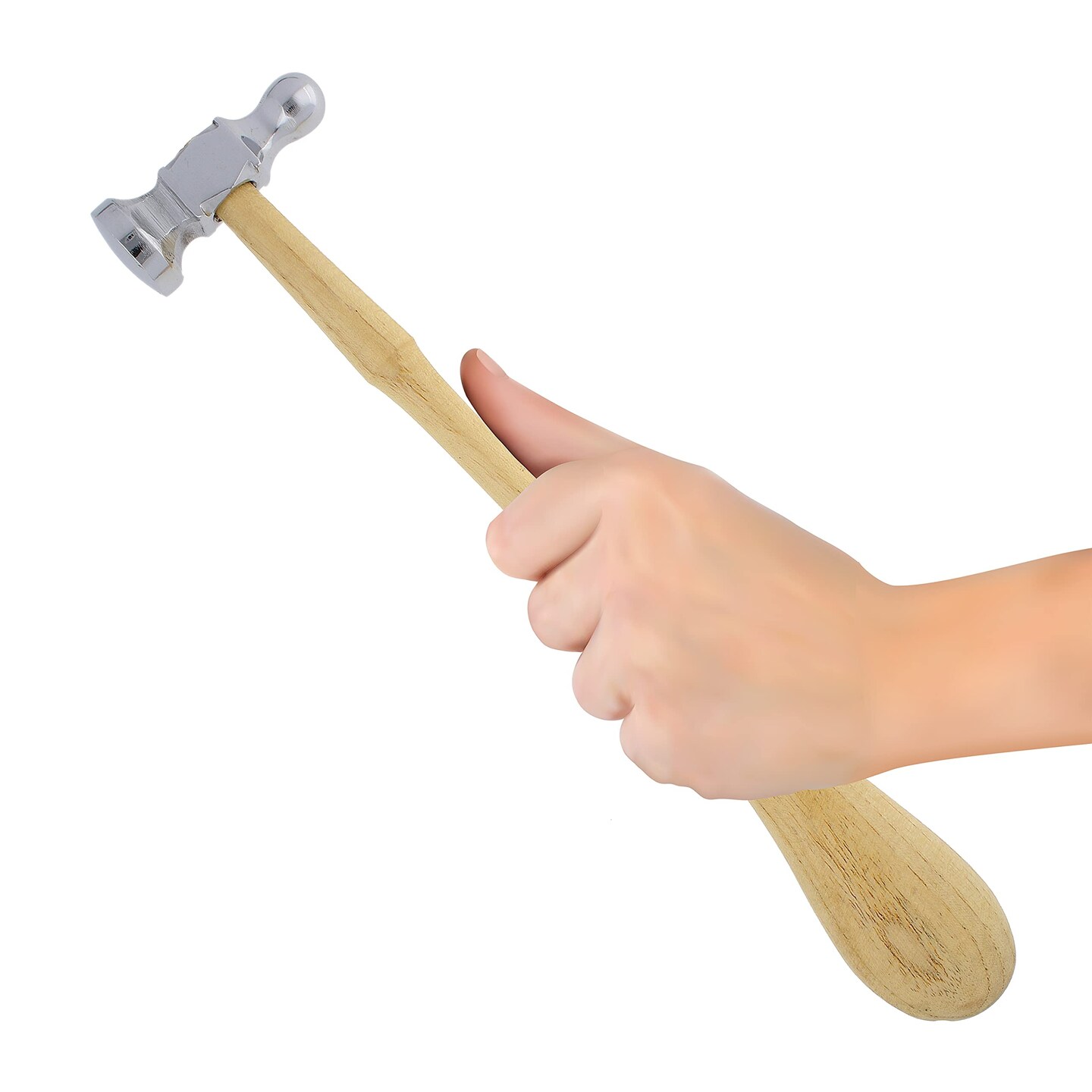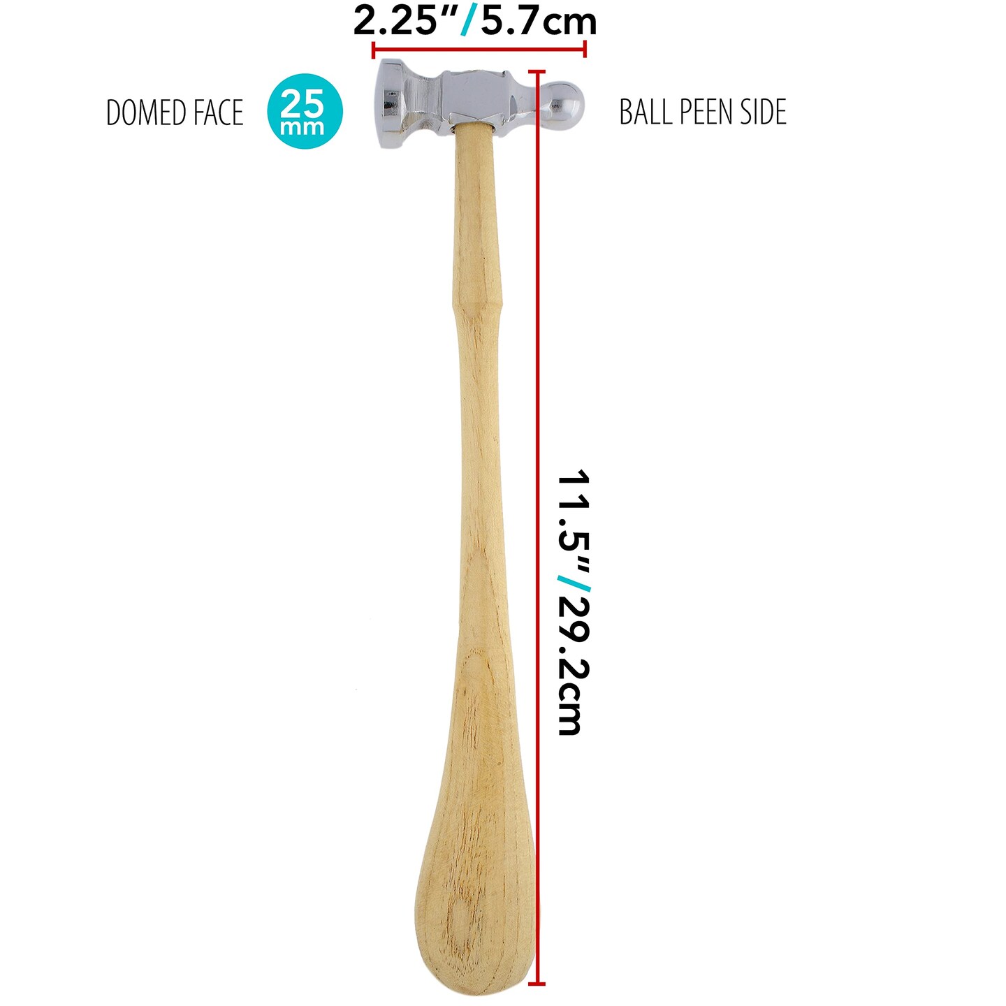 The Beadsmith Two-Sided Chasing Hammer – 11.5 Inches Wooden Handle, 2.25” Steel Head with a 14mm Ball Pein & 25mm Domed Face – Metalwork Tool Used to Add Texture & Dimension to Metalwork