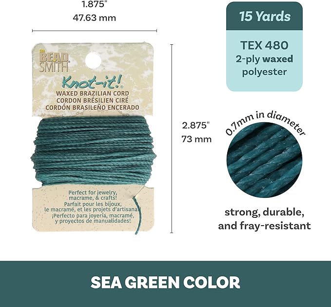 The Beadsmith Waxed Brazilian Cord, 0.7 mm Diameter, Light Wax, 15 Yards (13.7 m)
