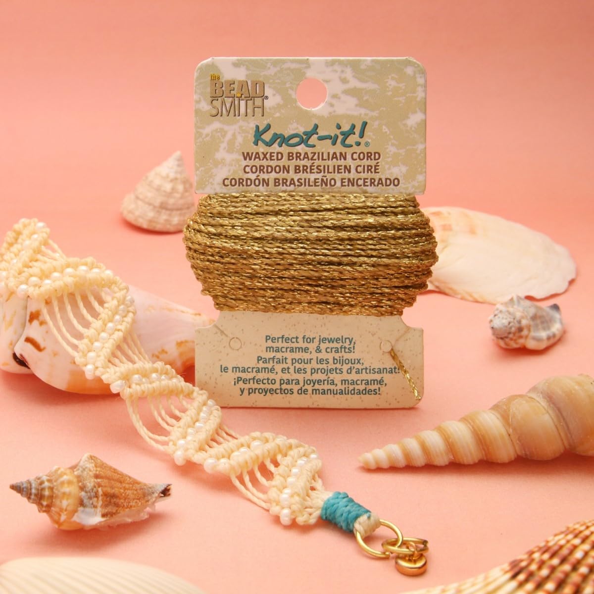The Beadsmith Waxed Brazilian Cord, 0.7 mm Diameter, Light Wax, 15 Yards (13.7 m)