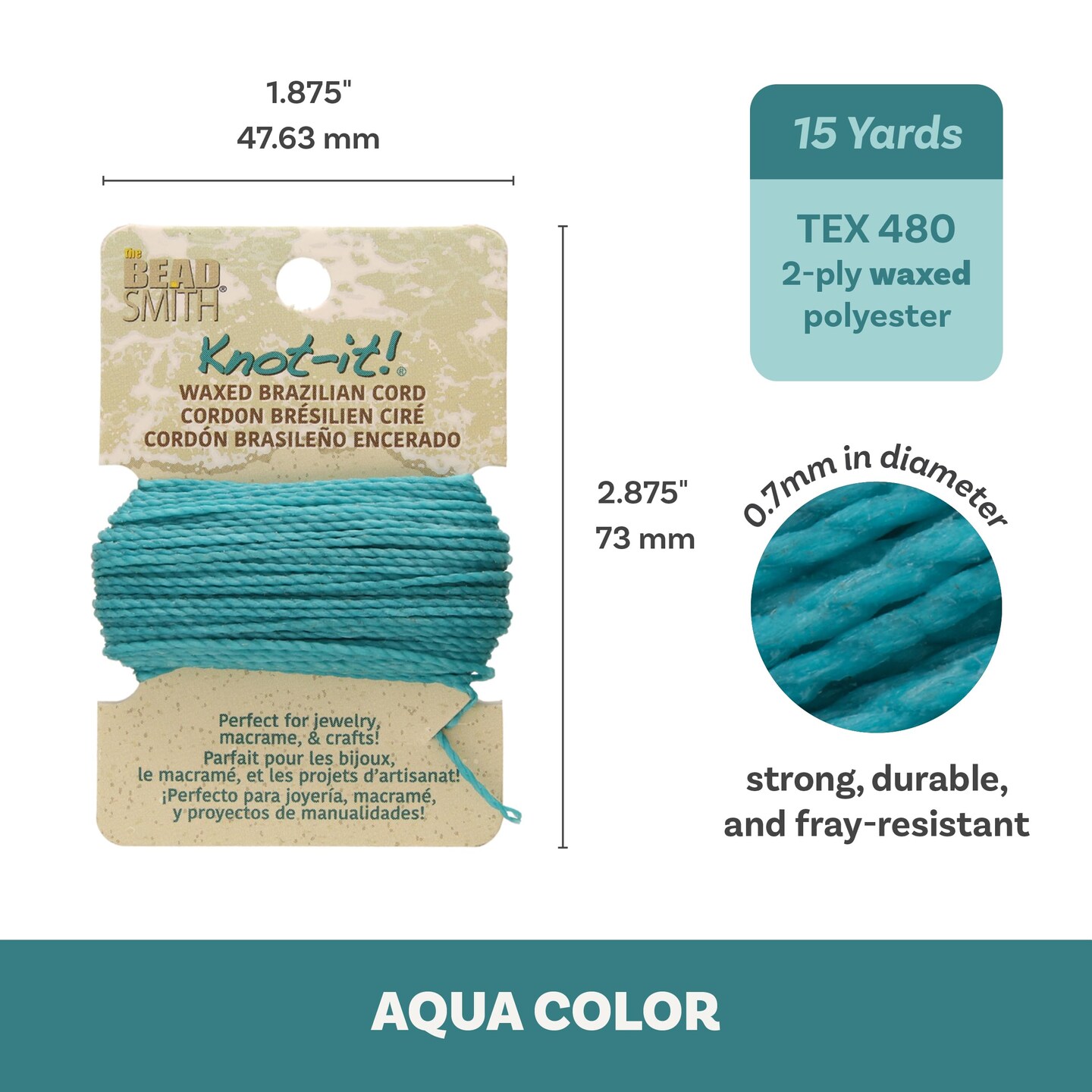 The Beadsmith Waxed Brazilian Cord, 0.7 mm Diameter, Light Wax, 15 Yards (13.7 m)