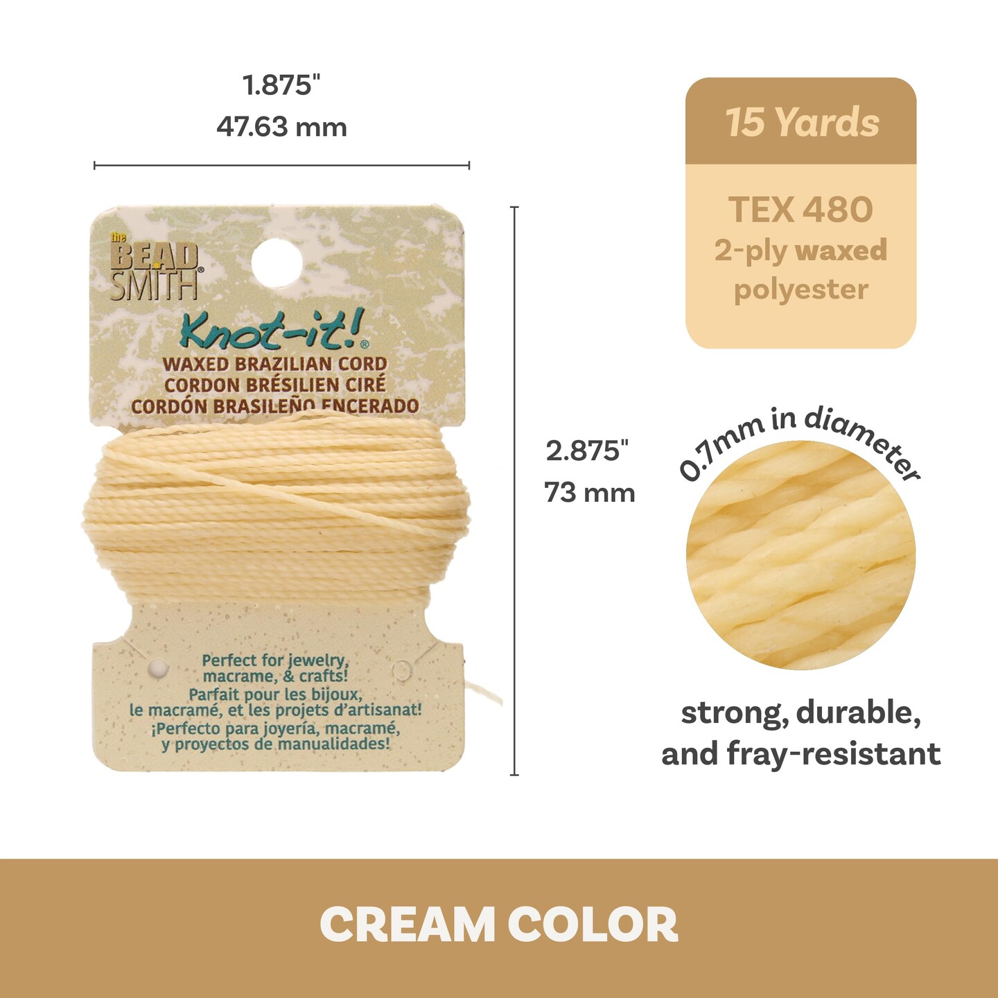 The Beadsmith Waxed Brazilian Cord, 0.7 mm Diameter, Light Wax, 15 Yards (13.7 m)