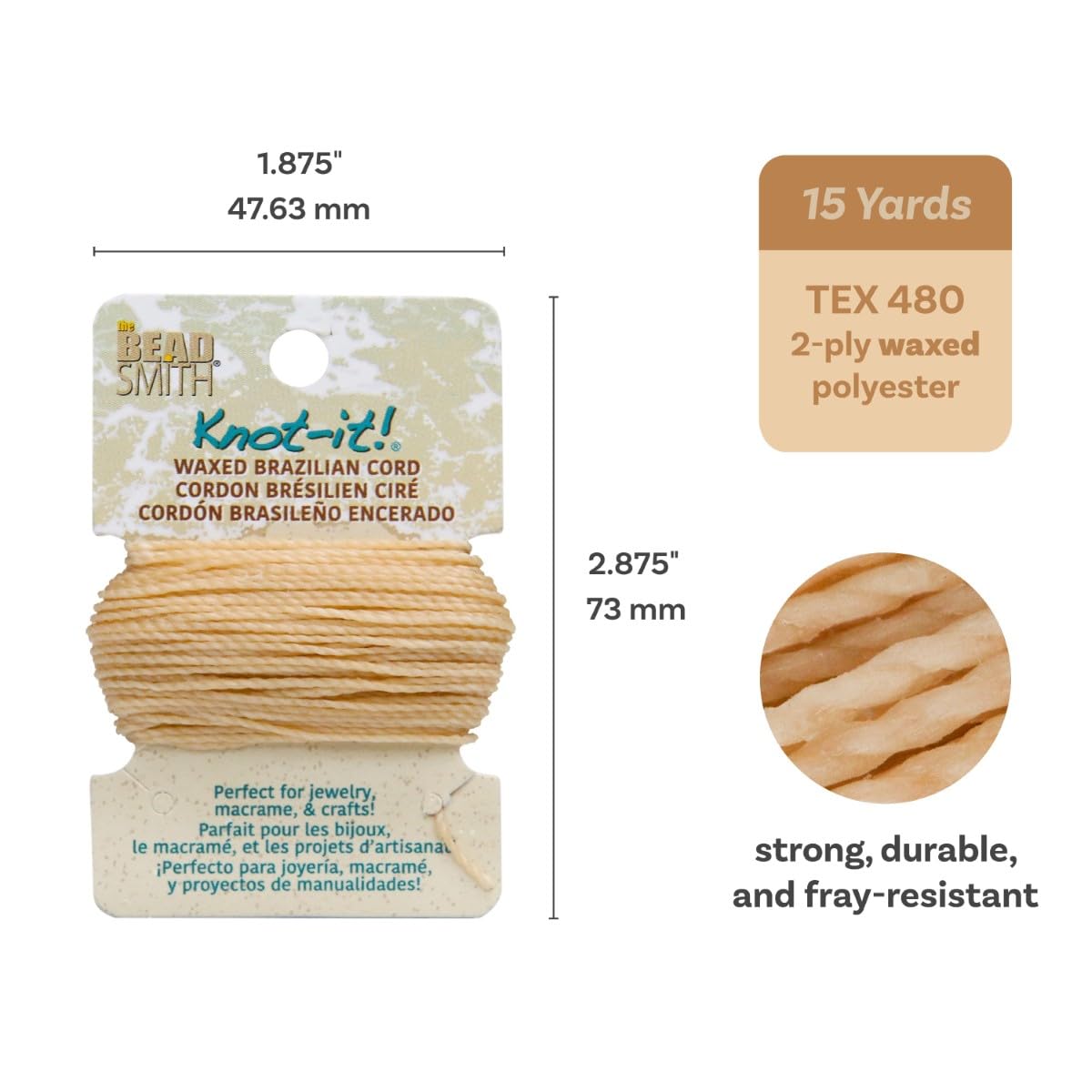 The Beadsmith Waxed Brazilian Cord, 0.7 mm Diameter, Light Wax, 15 Yards (13.7 m)