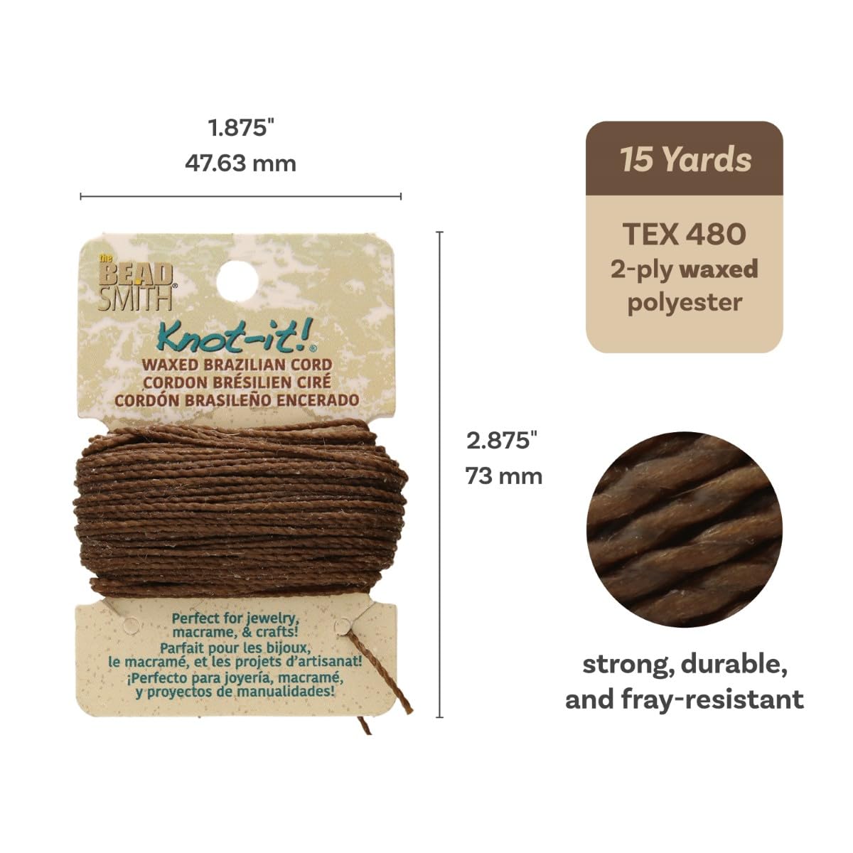 The Beadsmith Waxed Brazilian Cord, 0.7 mm Diameter, Light Wax, 15 Yards (13.7 m)