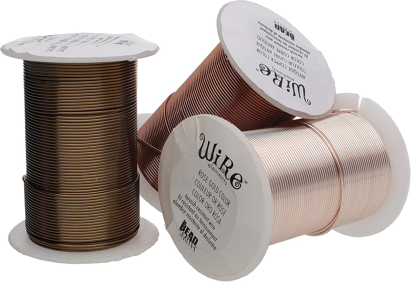 The Beadsmith Wire Elements 16-Gauge Lacquered Tarnish-Resistant Copper Wire for Jewelry Making, 4-8 Yard, 7.32 Meter Spools (Antique Copper, Vintage Bronze, & Rose Gold Color)