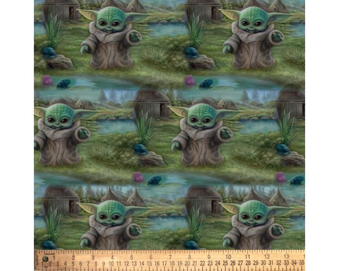 The Child Mandalorian Star Wars By Thomas Kinkade Licensed By David Textiles Digital Cotton Print Fabric | By The Yard | Sewing and Crafting | 44 inches wide