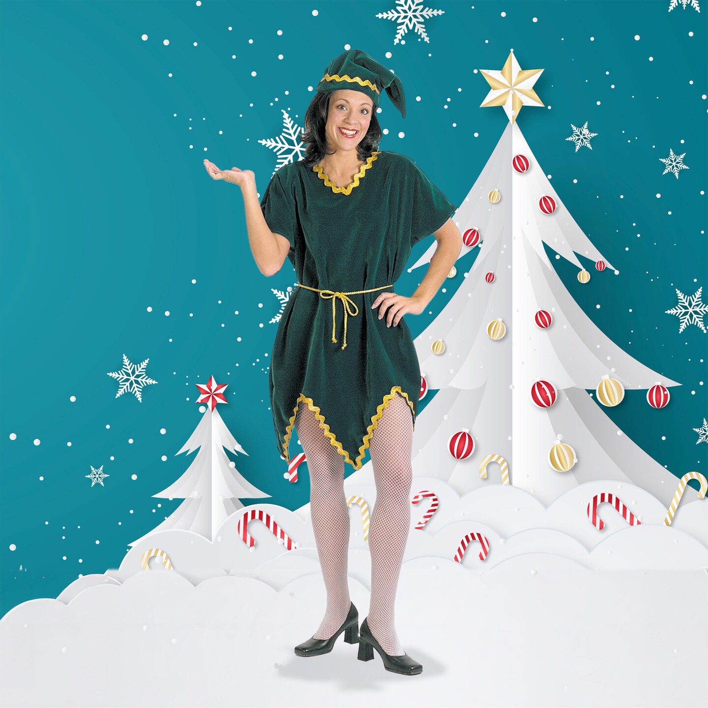 The Costume Center 3 Piece Green and Gold Christmas Elf Dress – One Size Fits Most