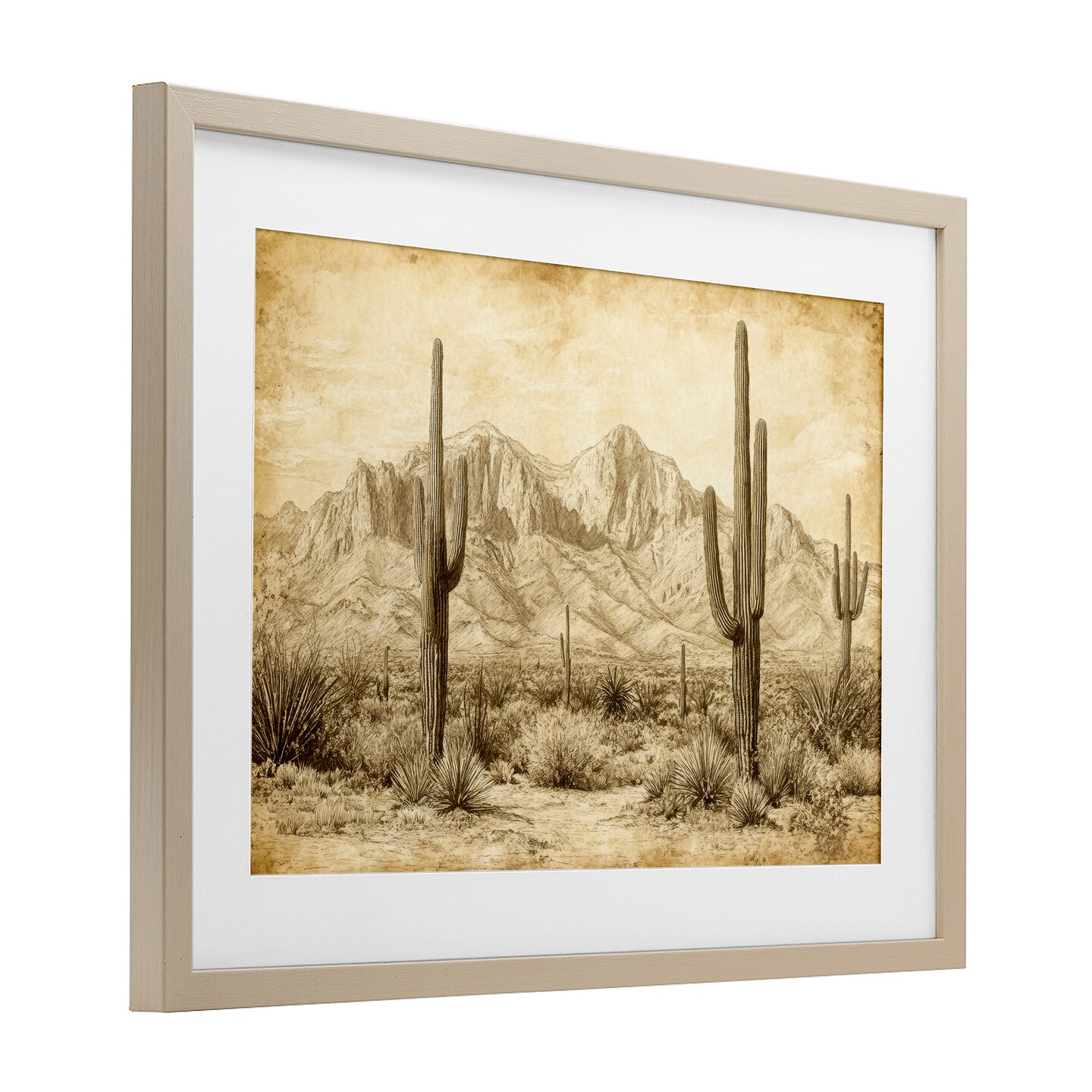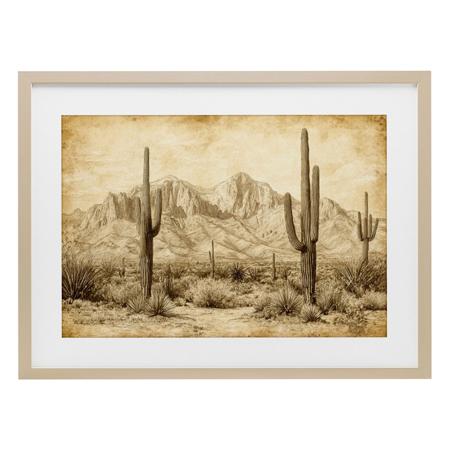 The Desert Sepia Landscape Framed Print Under Glass Art