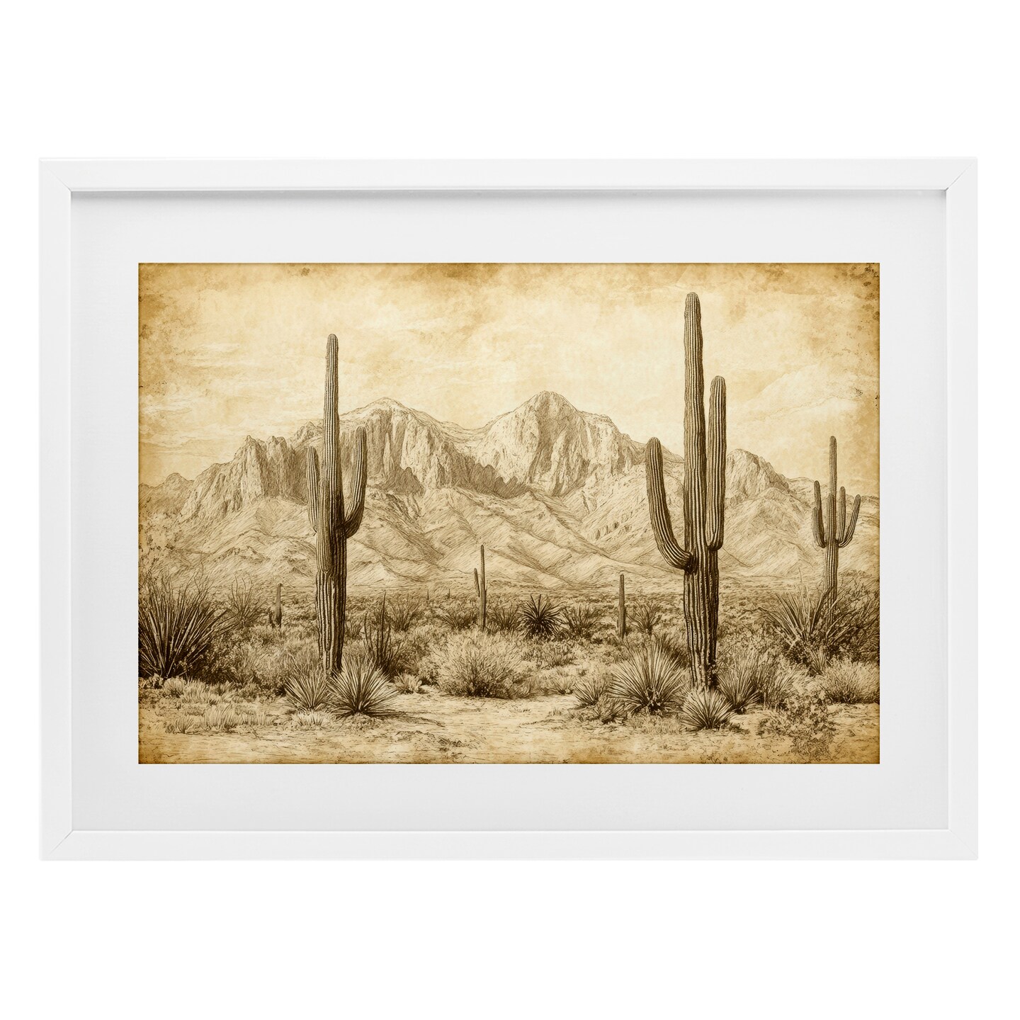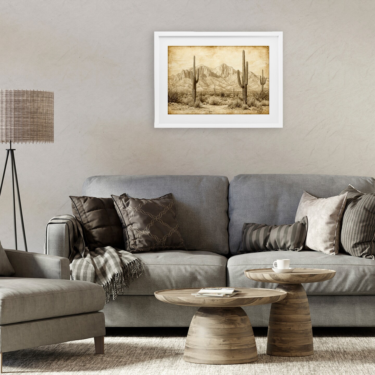 The Desert Sepia Landscape Framed Print Under Glass Art