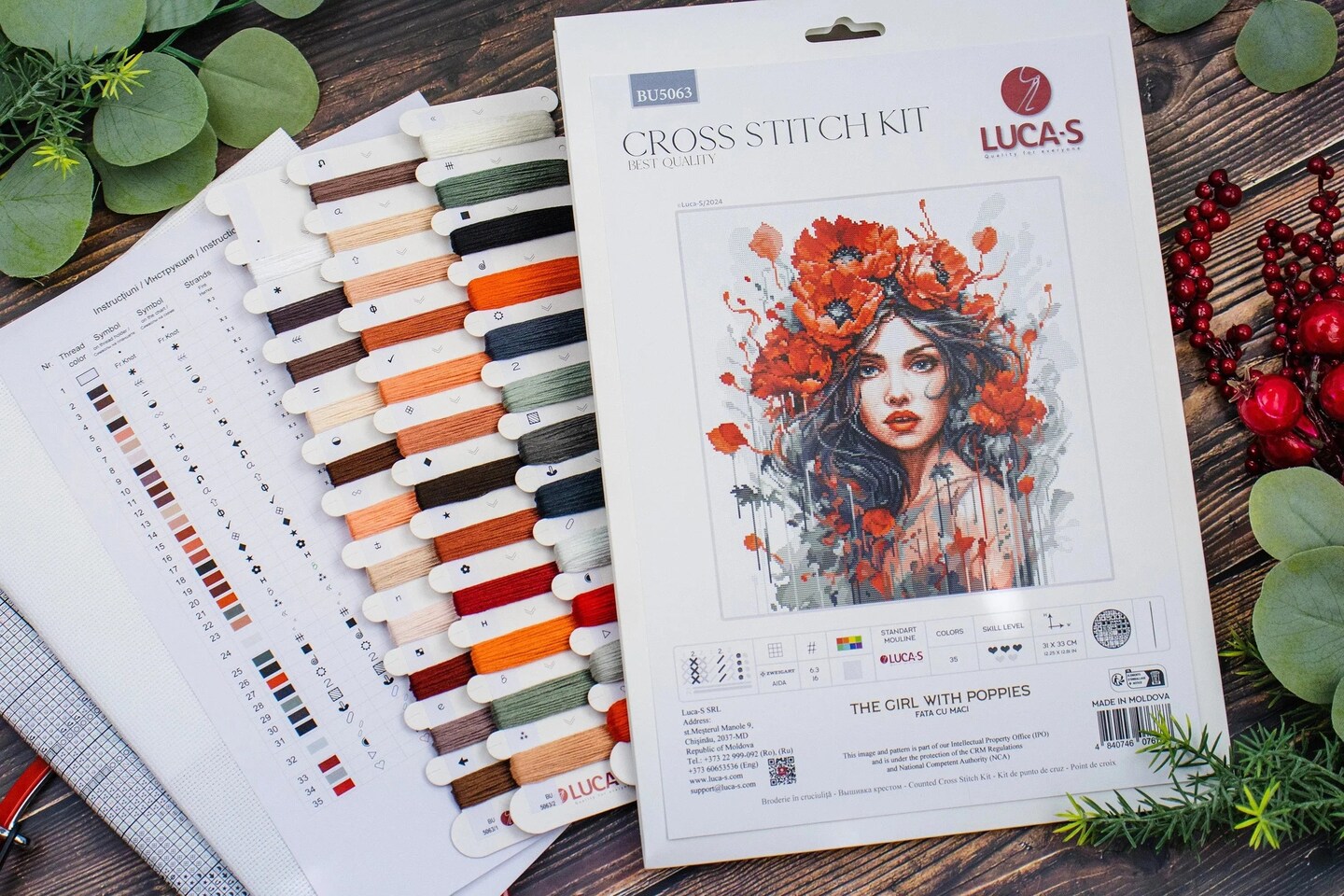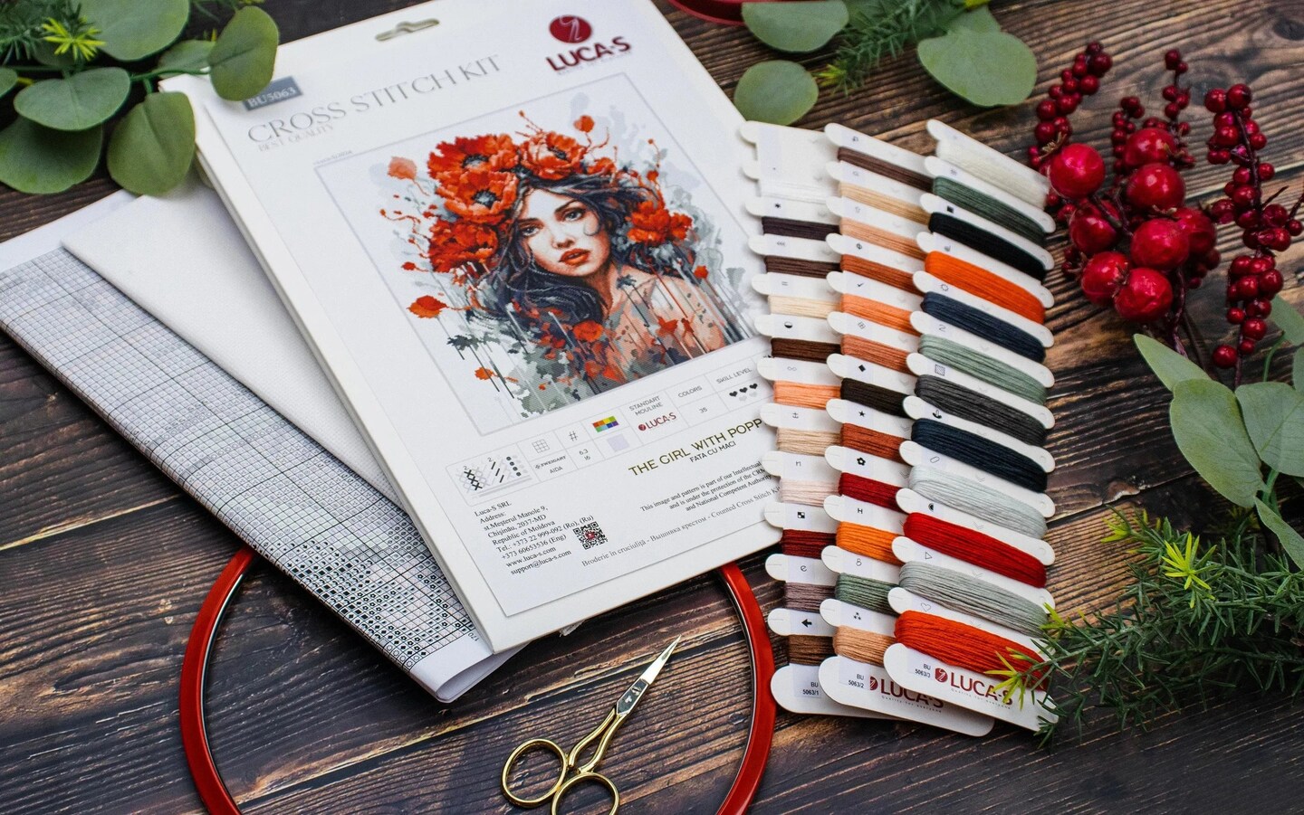The Girl With Poppies BU5063L Counted Cross-Stitch Kit