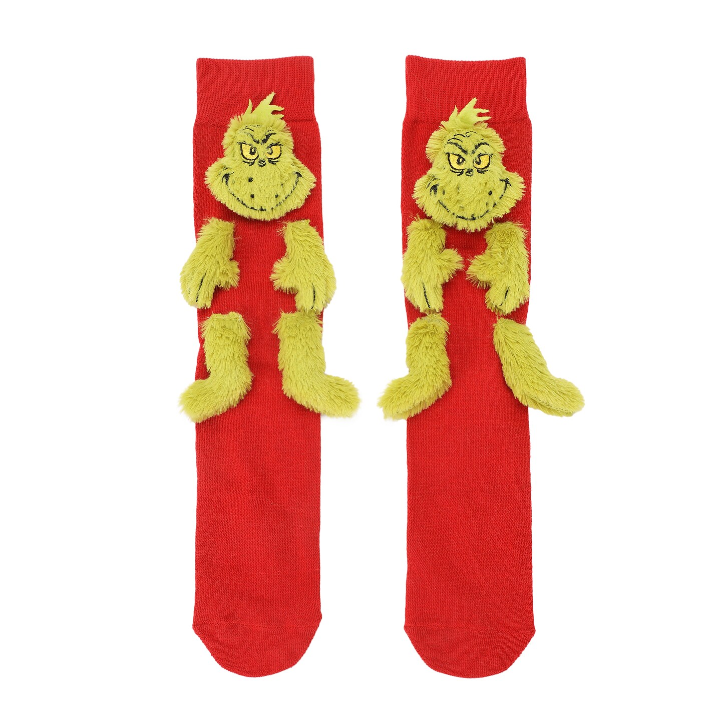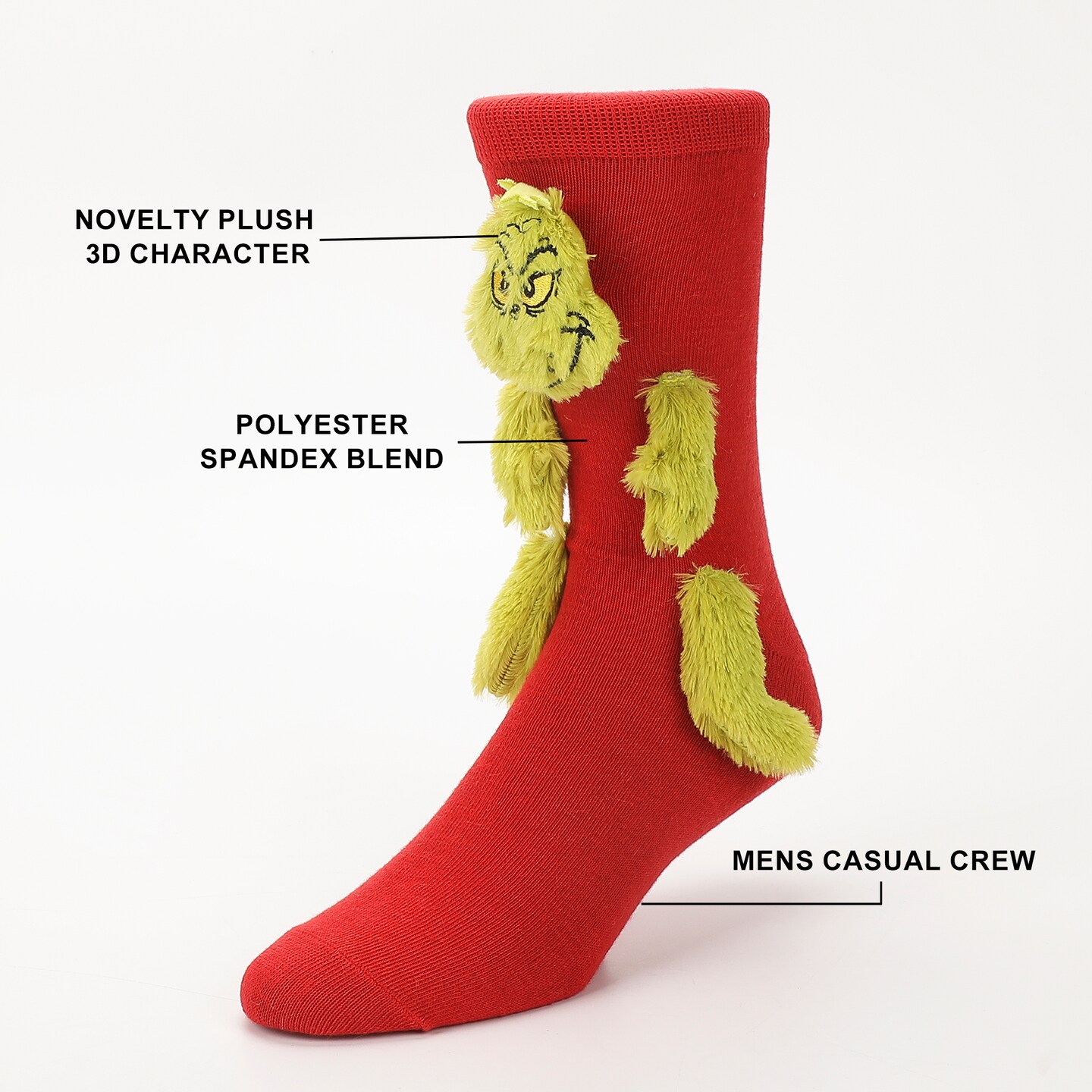 The Grinch 3D Plush Head Hands and Feet Mens Novelty Crew Socks