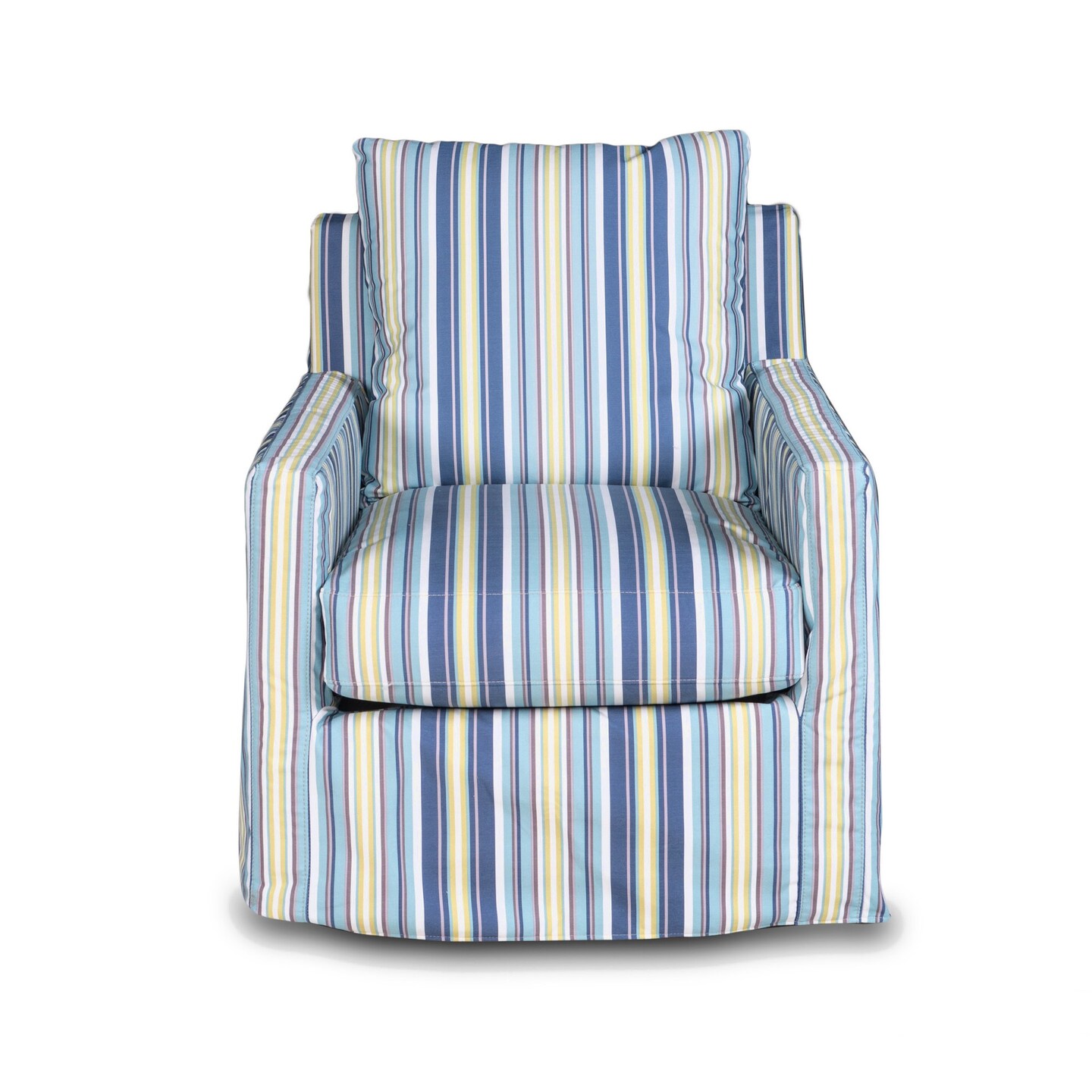 The Hamptons Collection 3-Pieces Blue Striped Fabric Club Chair Box Cushion Track Arm Slipcovers 35"