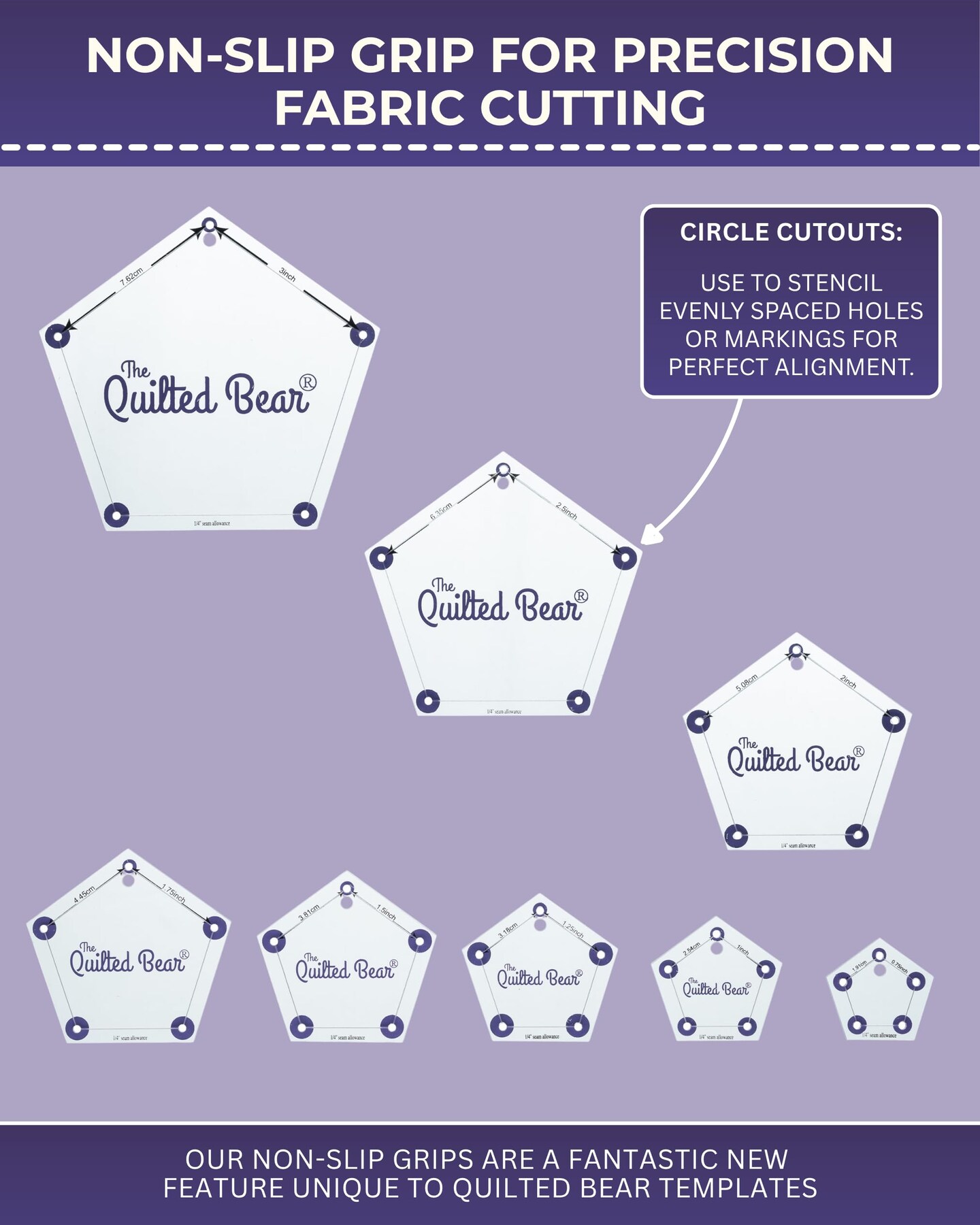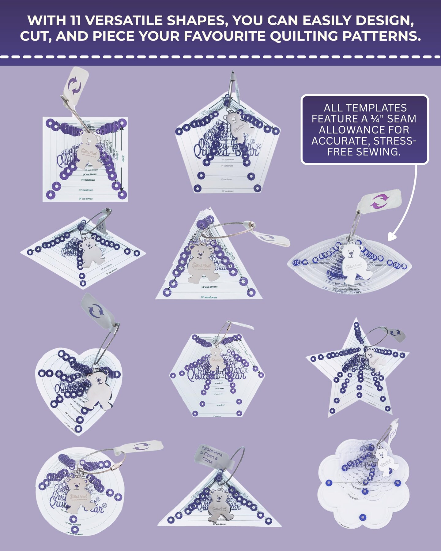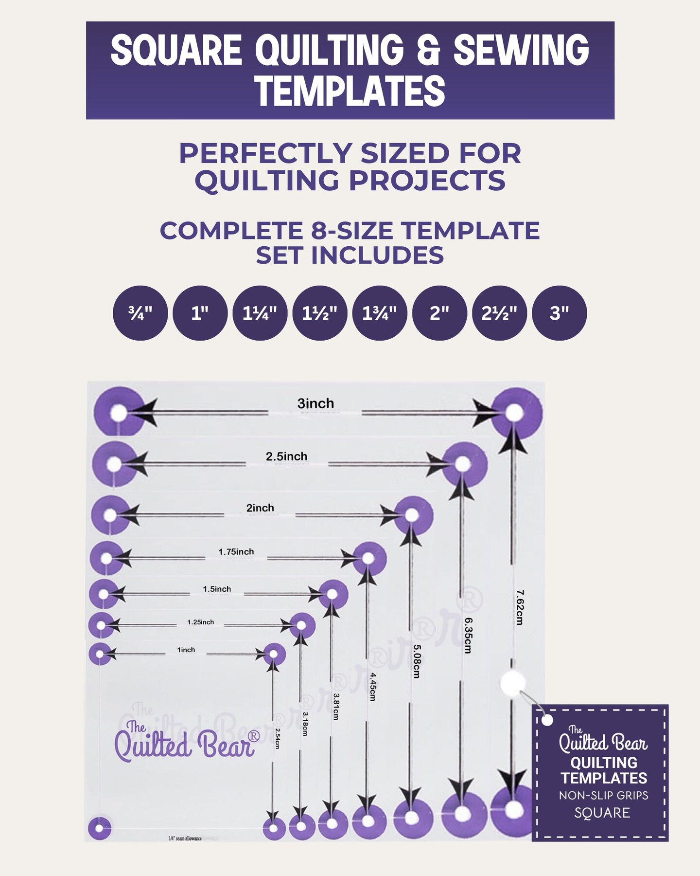 The Quilted Bear Square Quilting Templates – 8 Clear Non-Slip Acrylic Quilt Templates for Precise Fabric Cutting & Stress-Free Machine Quilting - Ideal for Quilt & Sewing Supplies (¾–3")