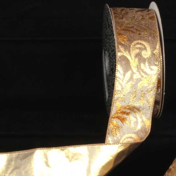 The Ribbon People Beige and Gold Scroll Lame Back Wired Craft Ribbon 2.5" x 20 Yards
