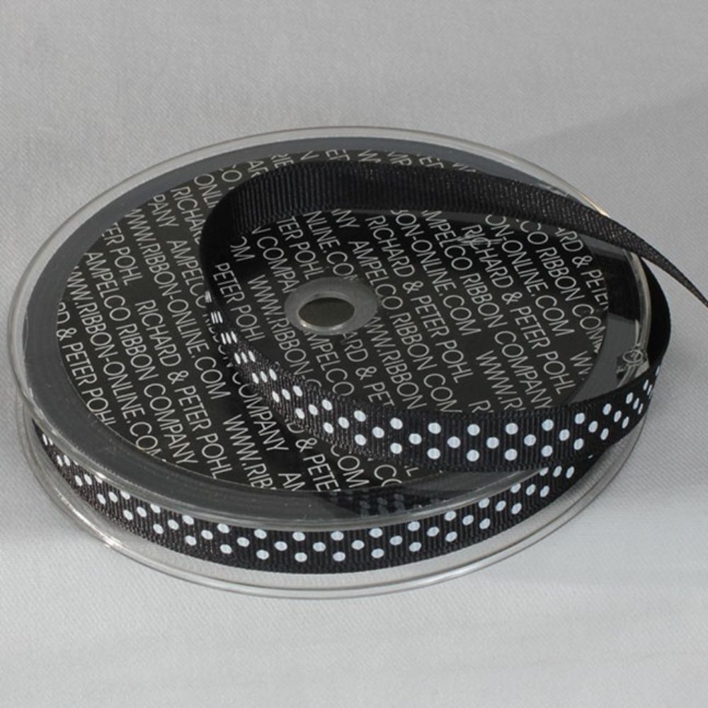 The Ribbon People Black and White Polka Dots Patterned Grosgrain Ribbon 0.3" x 22 Yards