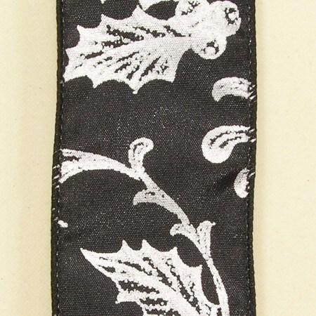 The Ribbon People Black with Silver Holly Berry Print Wired Craft Ribbon 2" x 40 Yards