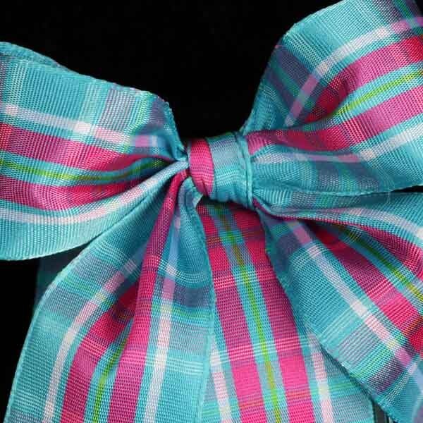 The Ribbon People Blue and Pink Woven Narrow Plaid Wired Craft Ribbon 1.5" x 22 Yards