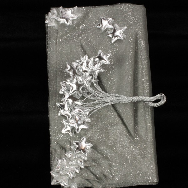 The Ribbon People Club Pack of 12 Silver Wire Tie Star Gift Bag 12" x 11"