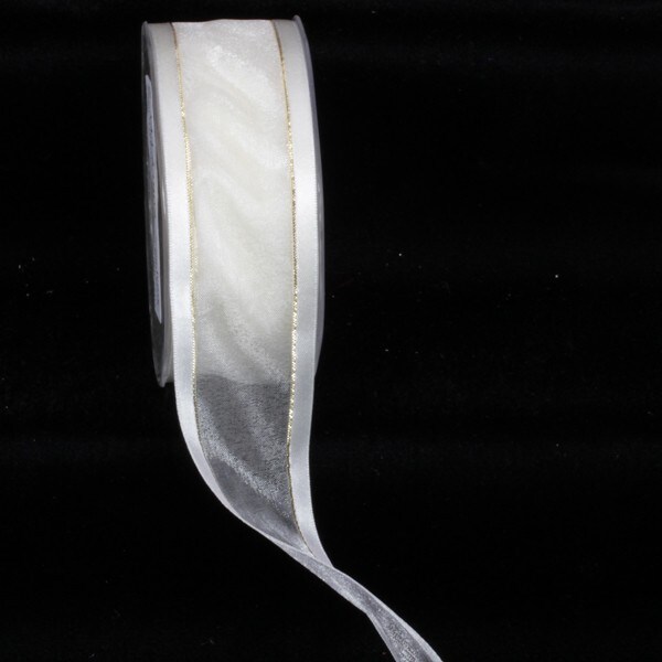 The Ribbon People Ivory and Gold Edged Craft Ribbon Trim with Gold Setting 1.5" x 30 Yards