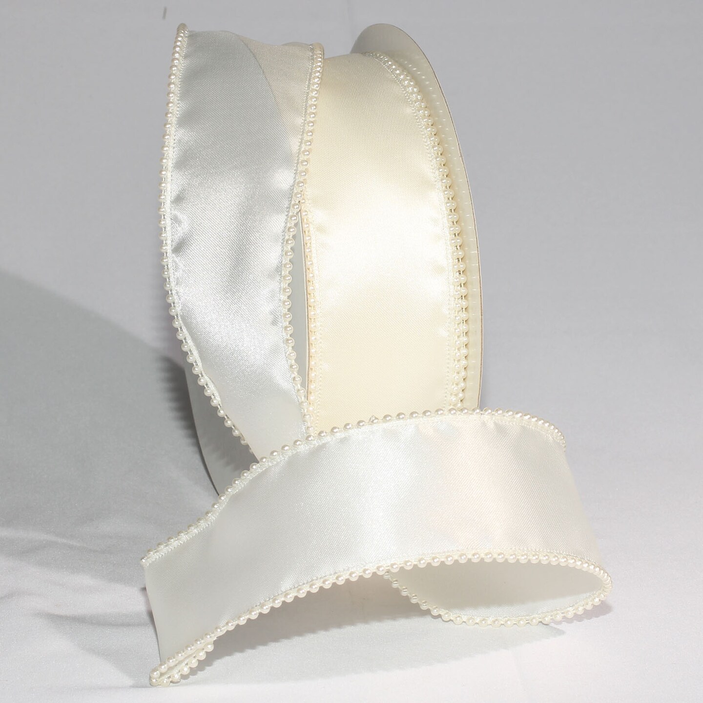 The Ribbon People Ivory Pearl Edge Satin Wired Craft Ribbon 2" x 20 Yards