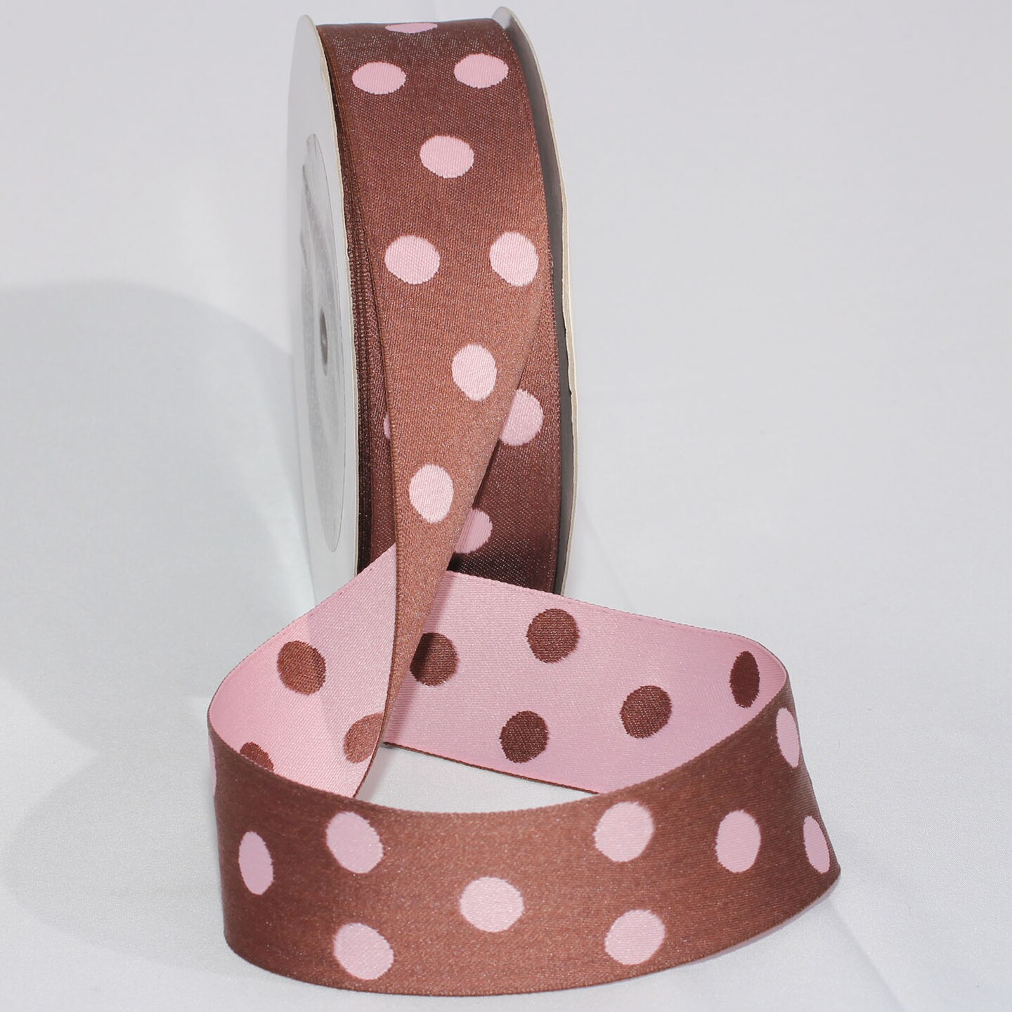 The Ribbon People Pink and Brown Polka Dot Craft Ribbon 1.5" x 27 Yards