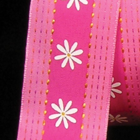 The Ribbon People Pink and White Flower Centered Wired Craft Ribbon 1.5" x 54 Yards