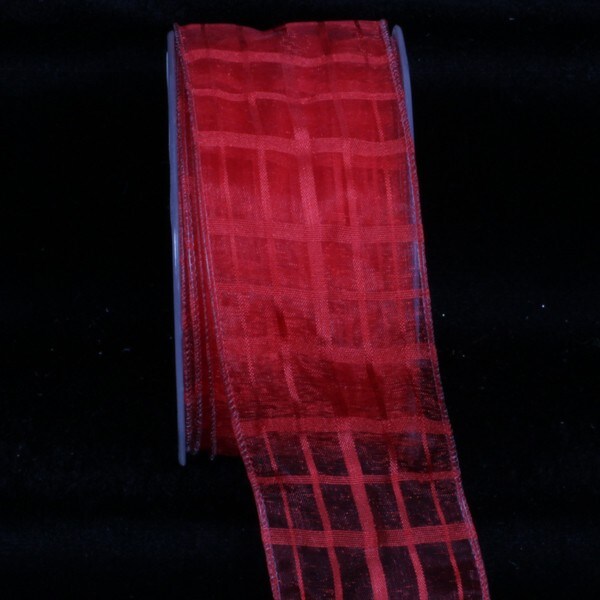 The Ribbon People Red Solid and Sheer Check Wired Craft Ribbon 2" x 27 Yards