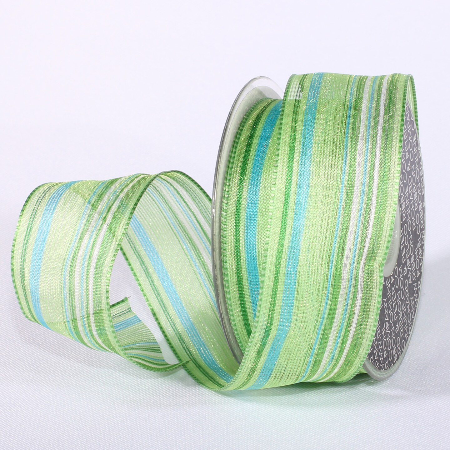 The Ribbon People Sheer Green and Blue Striped Wired Craft Ribbon 1.5" x 27 Yards