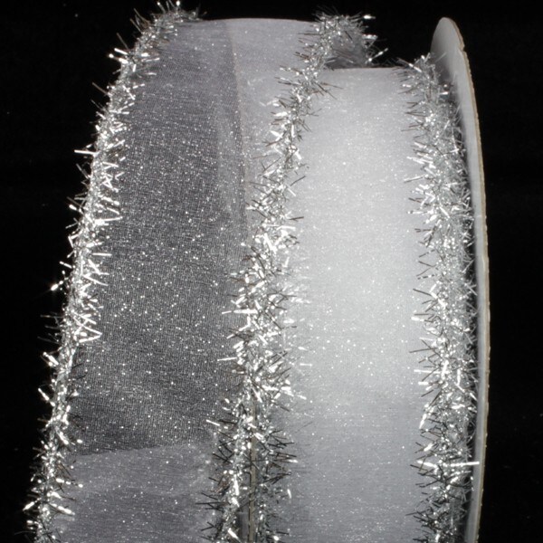 The Ribbon People Sheer White and Silver Fuzzy Edge Wired Craft Ribbon 6" x 20 Yards