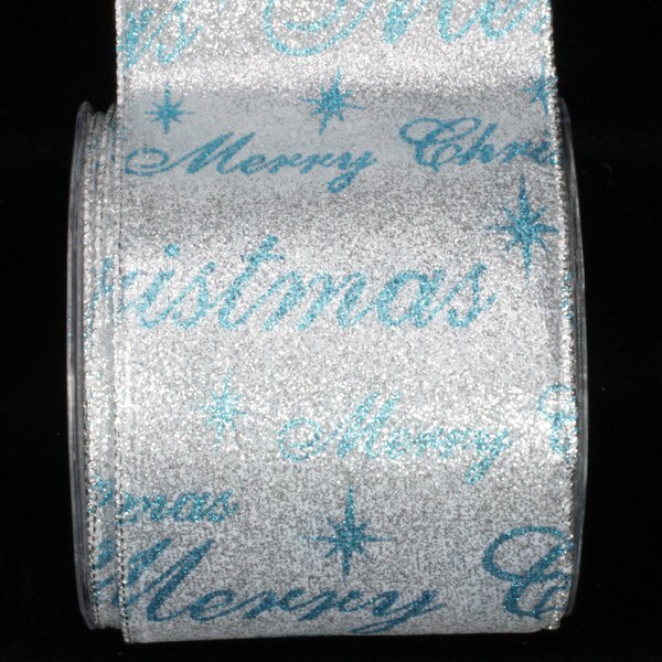 The Ribbon People Silver and Blue Merry Christmas Wired Craft Ribbon 4" x 20 Yards