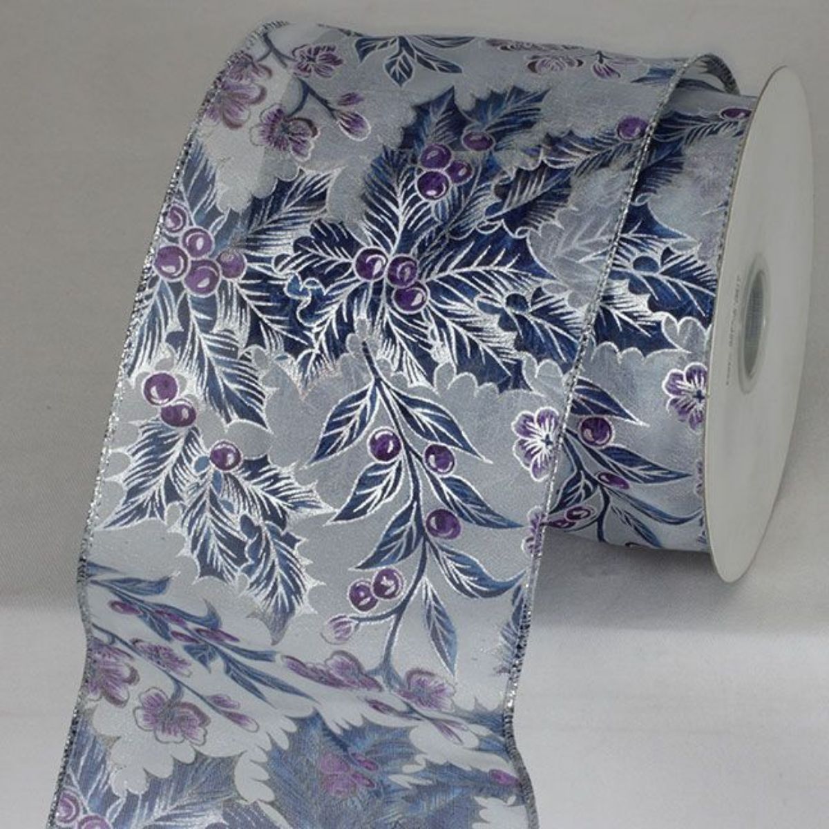The Ribbon People Silver and Navy Blue Wired Craft Ribbon 4" x 20 Yards