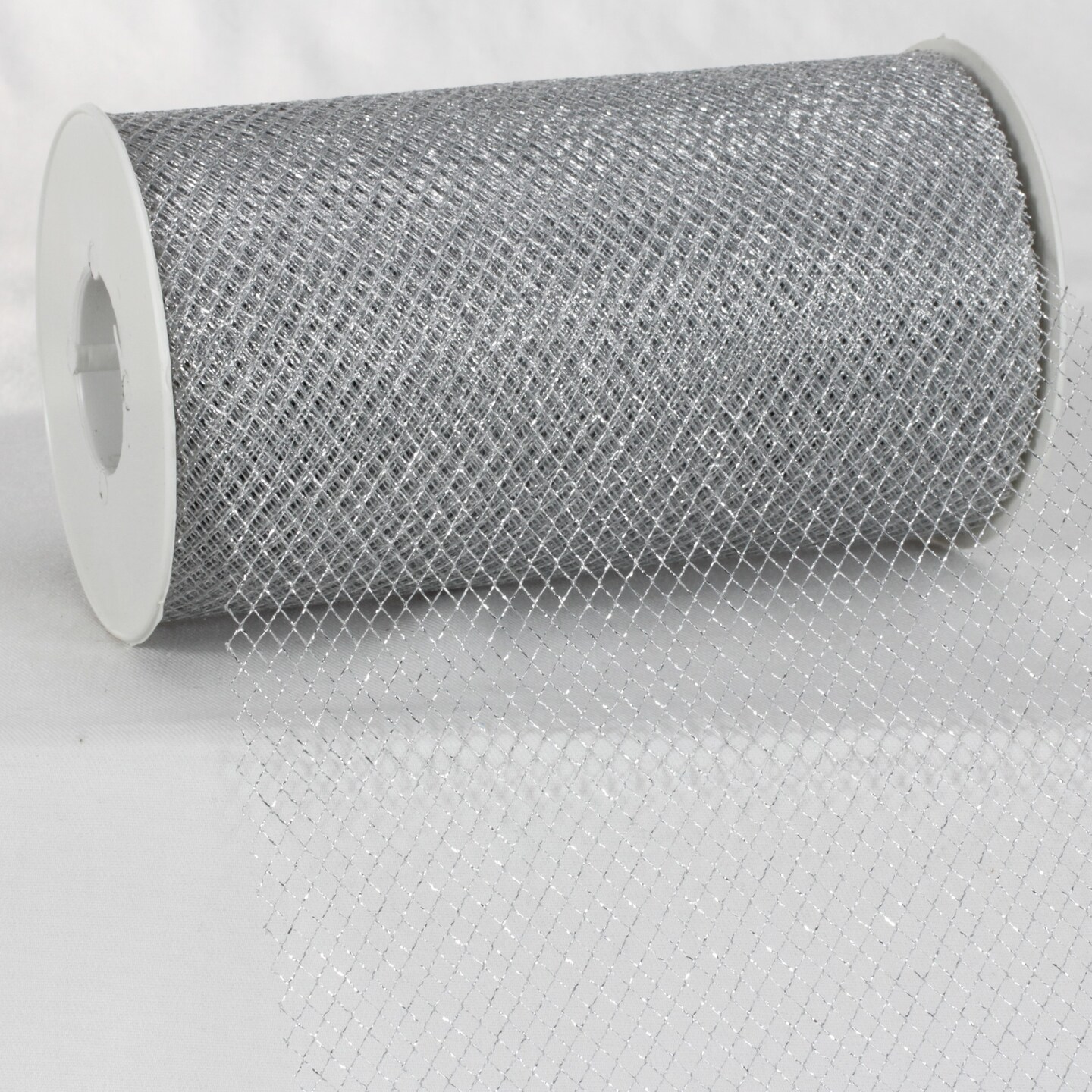 The Ribbon People Silver Colored Metallic Finish Tulle Craft Ribbon 6" x 22 Yards