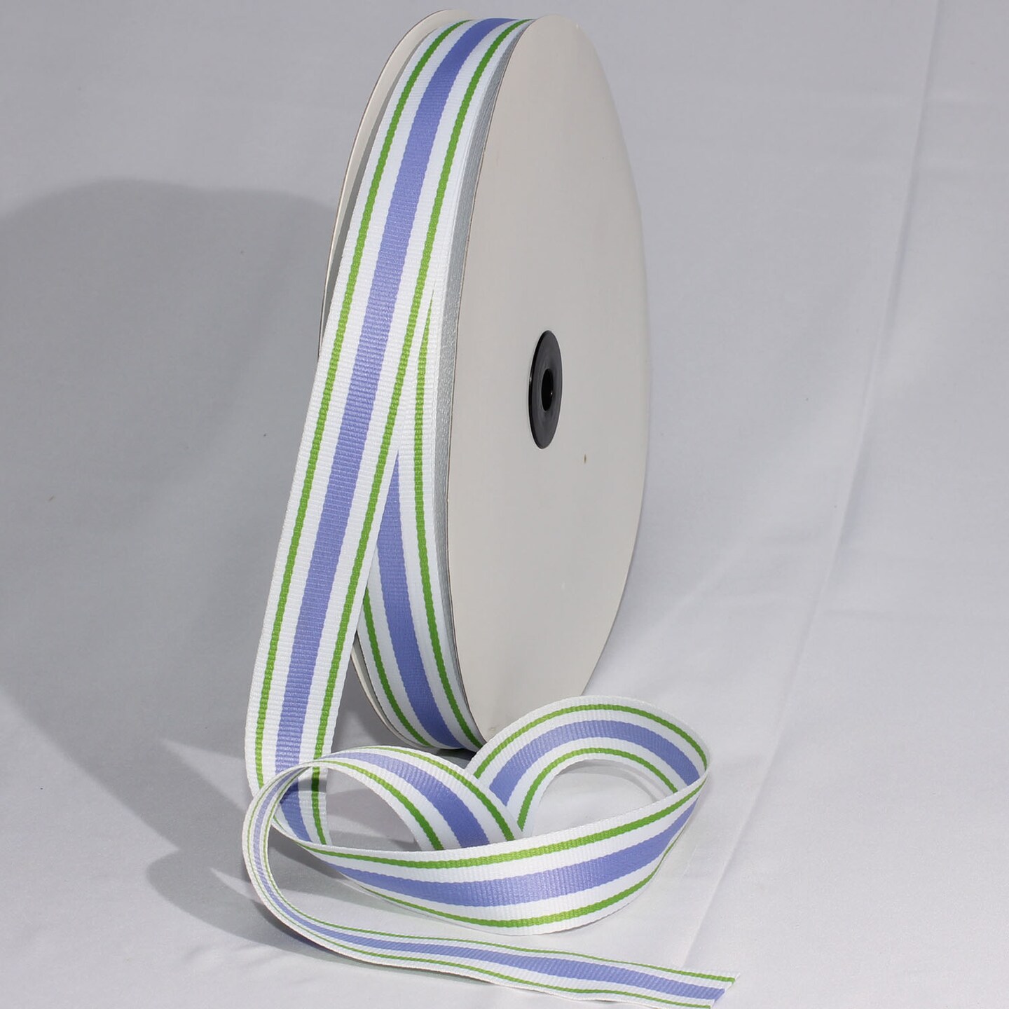 The Ribbon People White and Purple Striped Woven Grosgrain Craft Ribbon 1" x 55 Yards
