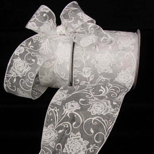 The Ribbon People White Roses Sheer Wired Craft Ribbon 5" x 20 Yards