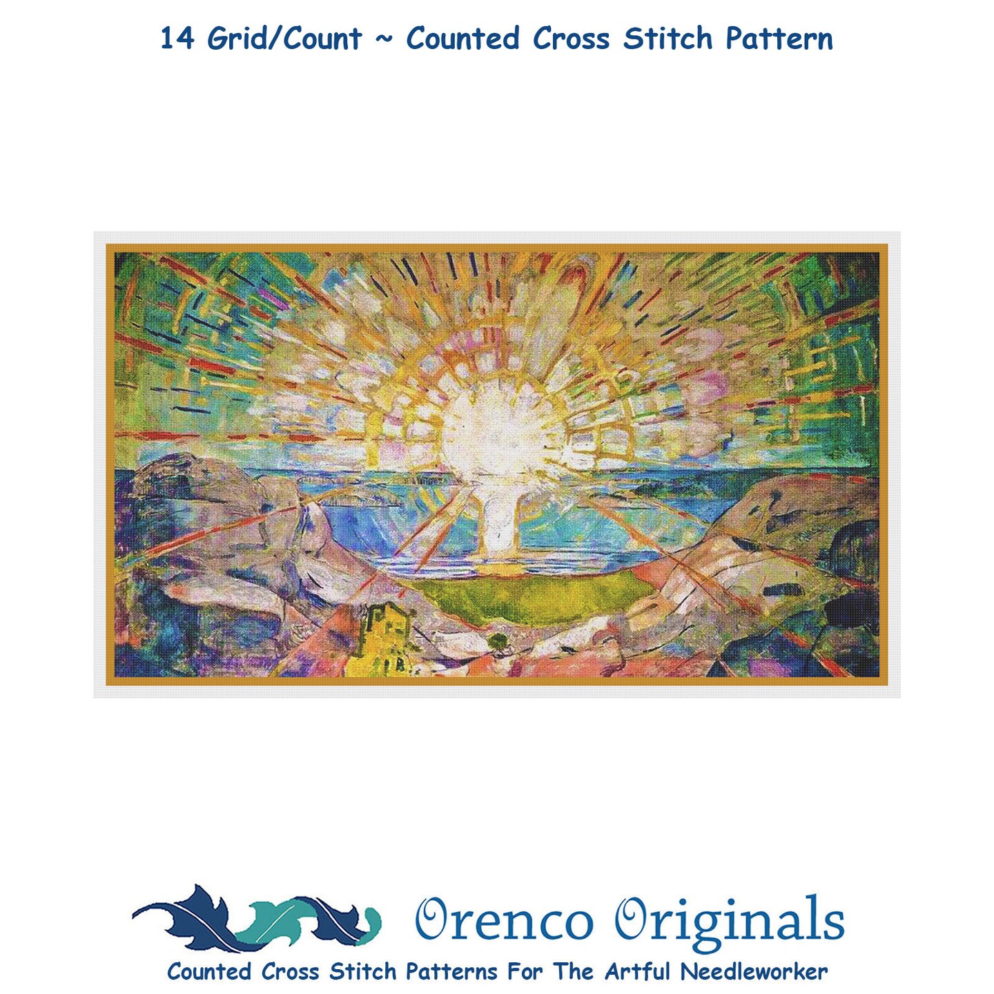 The SUN by Symbolist Artist Edvard Munch Counted Cross Stitch Pattern