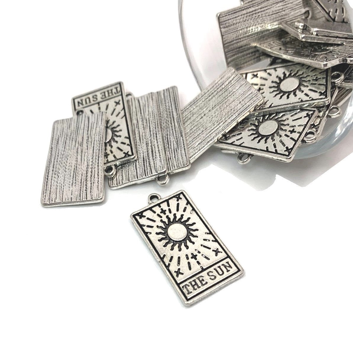 The Sun Silver Tarot Card Fortune Teller Pendant, 28x15mm