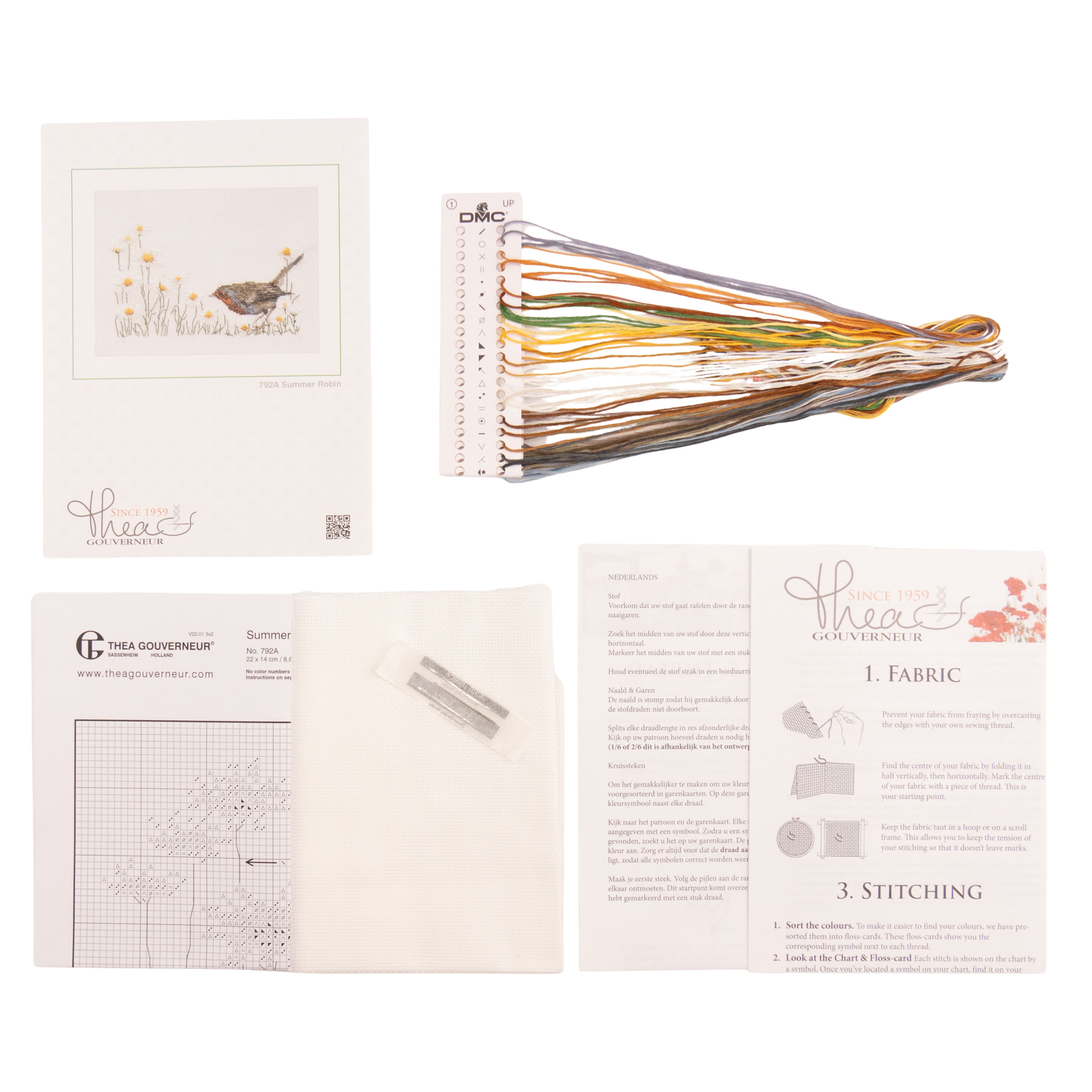Thea Gouverneur Since 1959® Summer Robin & Daisies Counted Cross Stitch Kit