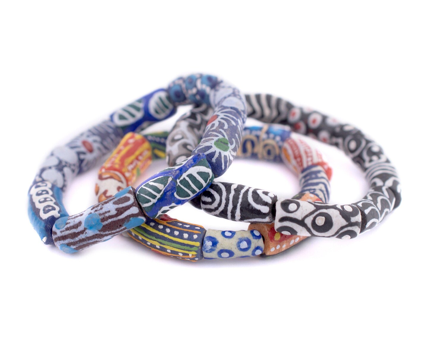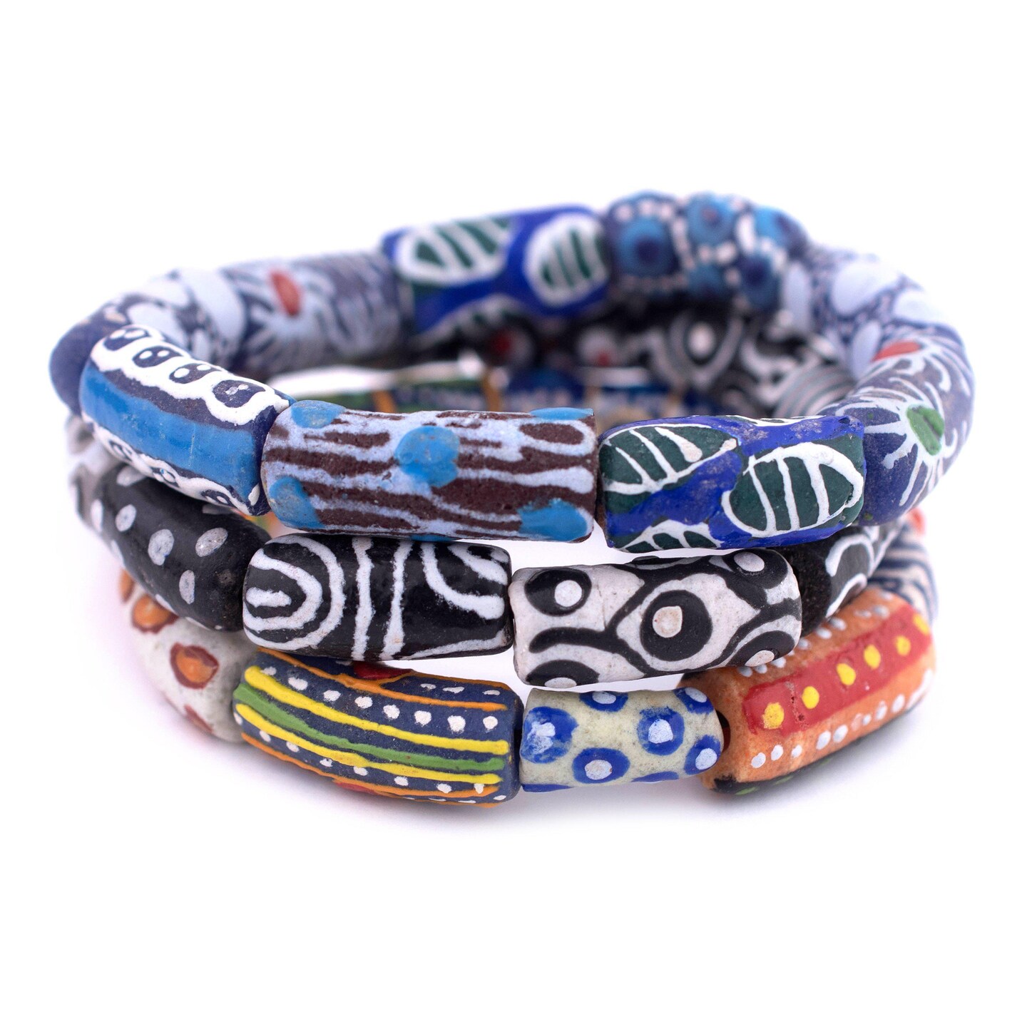 TheBeadChest African Bead Stretch Bracelet, Made in Ghana by Krobo Artisans, Unisex, African Trade Bead Style, Kumasi Stack