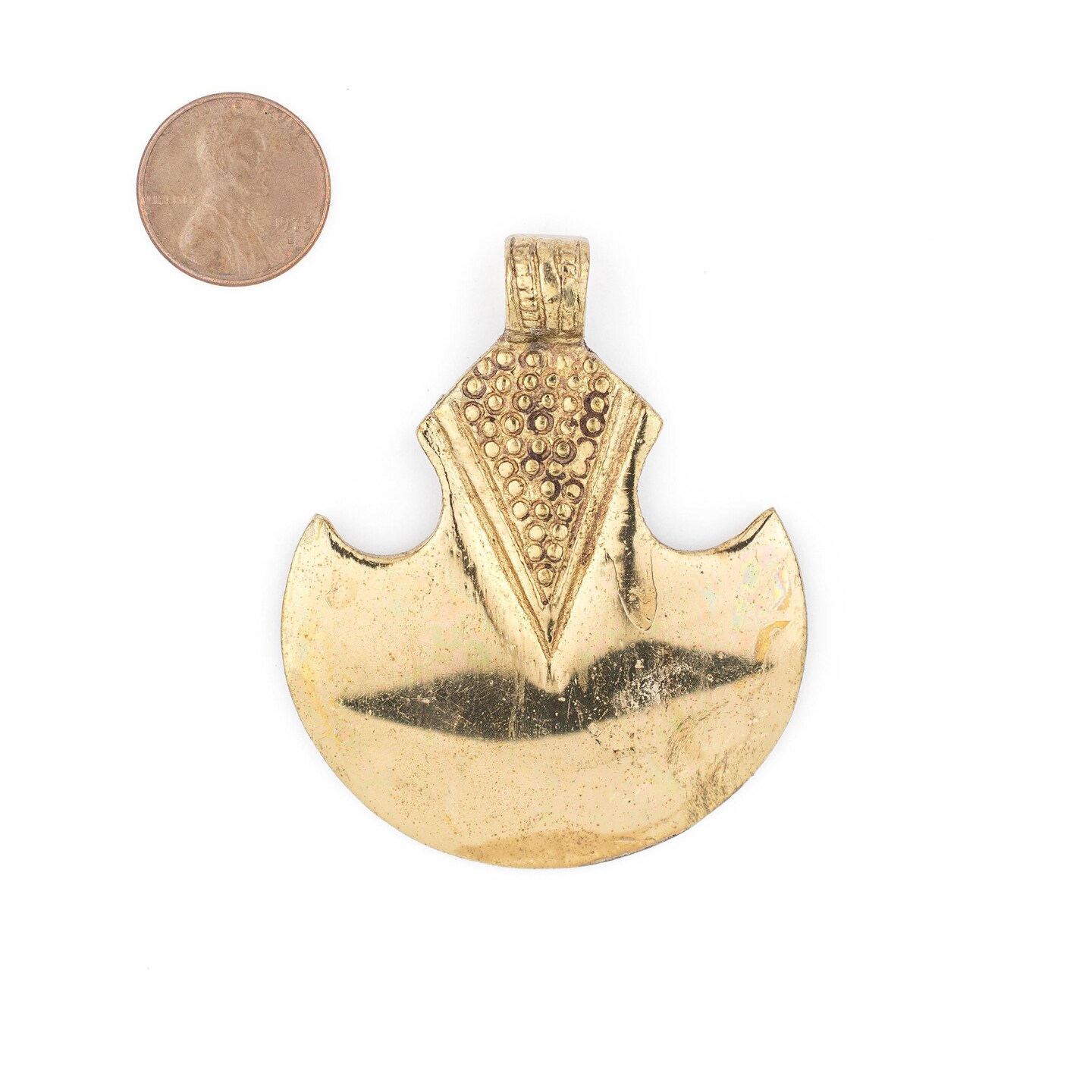 TheBeadChest Brass Half Moon Tuareg Shield Pendant 63x51mm Morocco African Large Hole Handmade