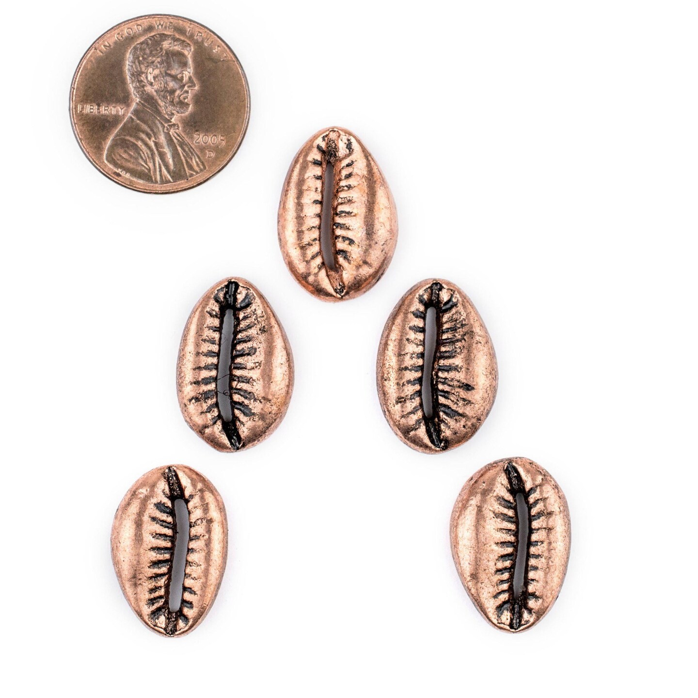 TheBeadChest Copper Cowrie Shells (Set of 5): Metal Beads for DIY Crafts & Jewelry-Making Inspired by African Sea Shells