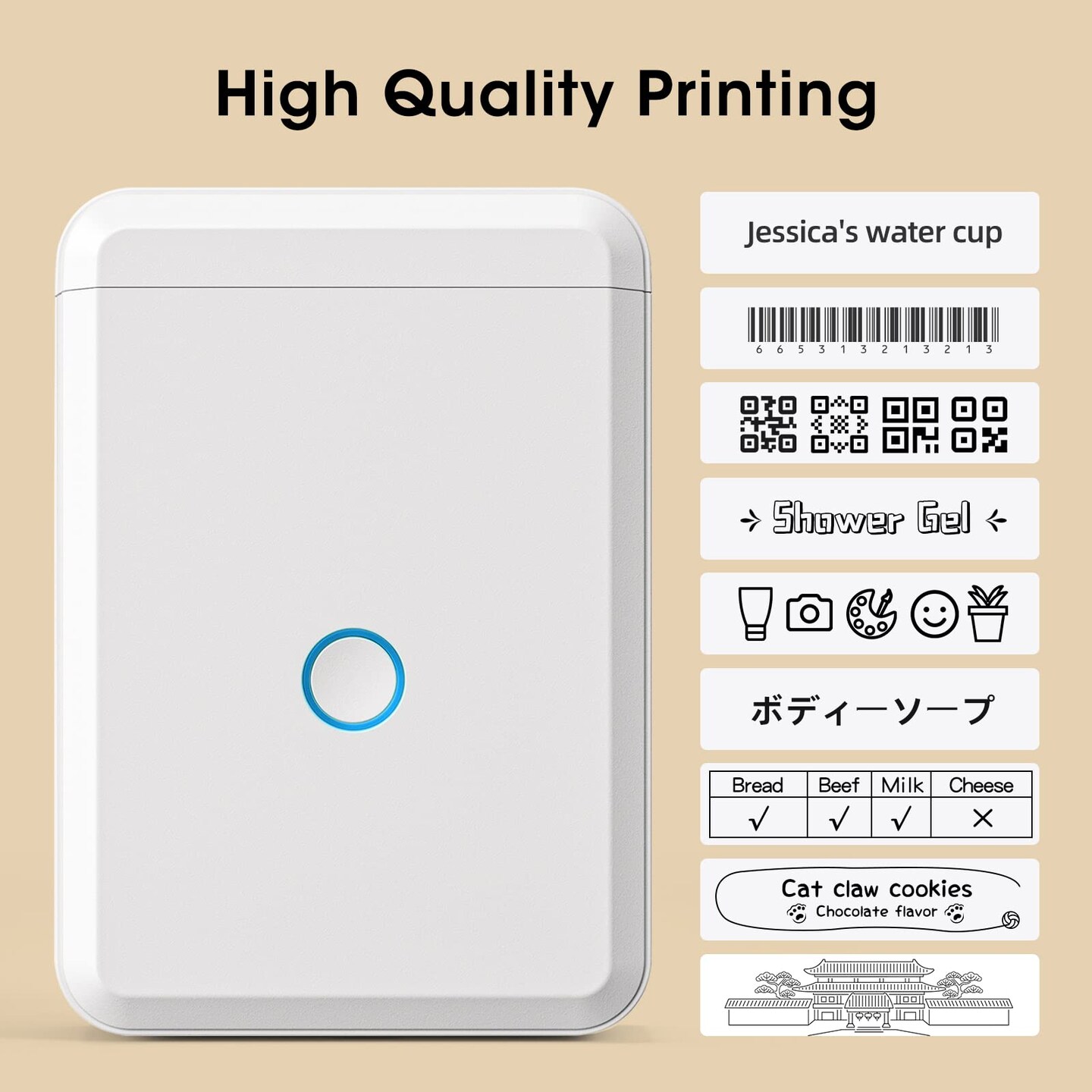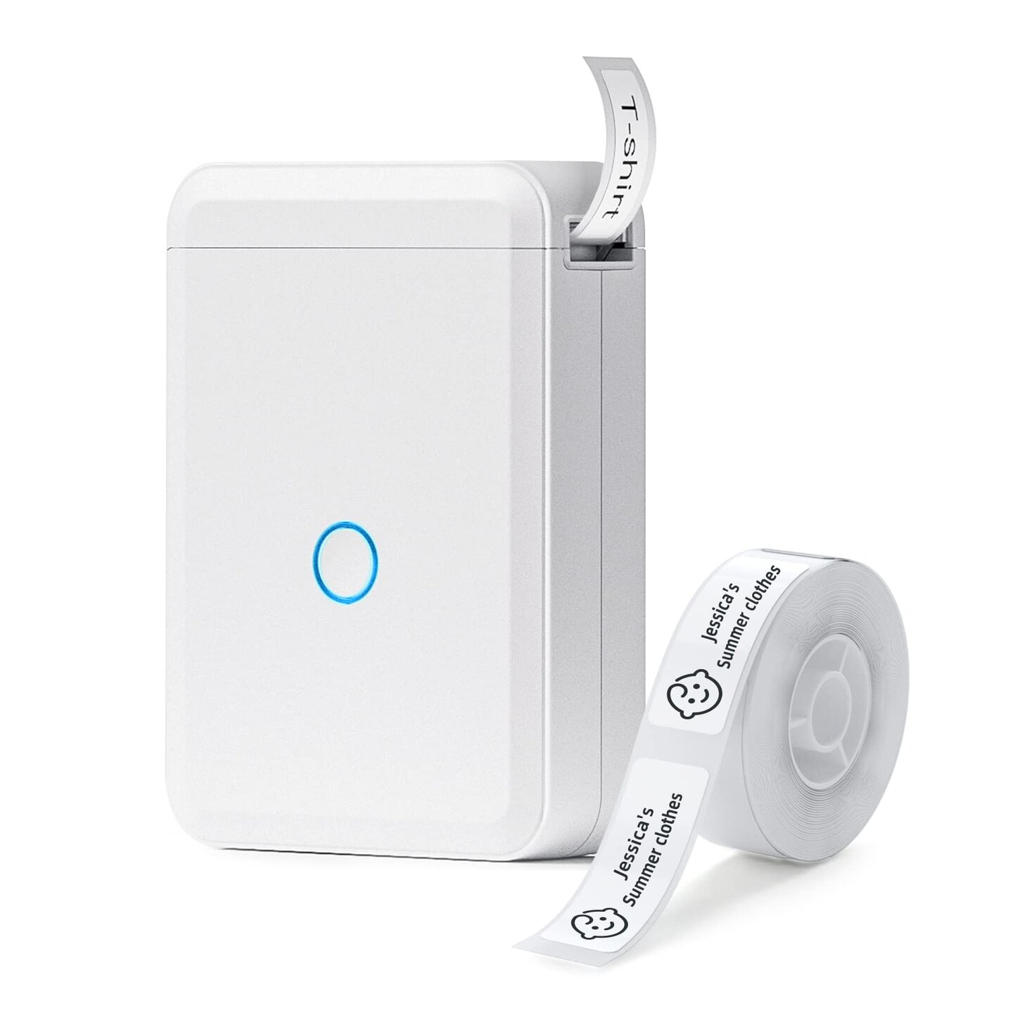 Thermal Label Makers with 1 Roll Tape, Portable Mini Wireless Bluetooth Sticker Printer for Home Office School Use, Mobile Phone Editable, Printable Width 0.47 inch, White
